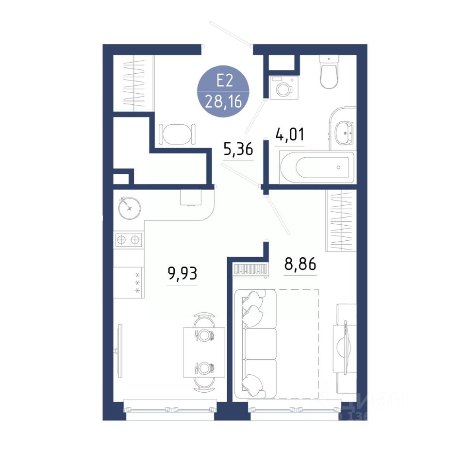 Общая площадь28,16 м2