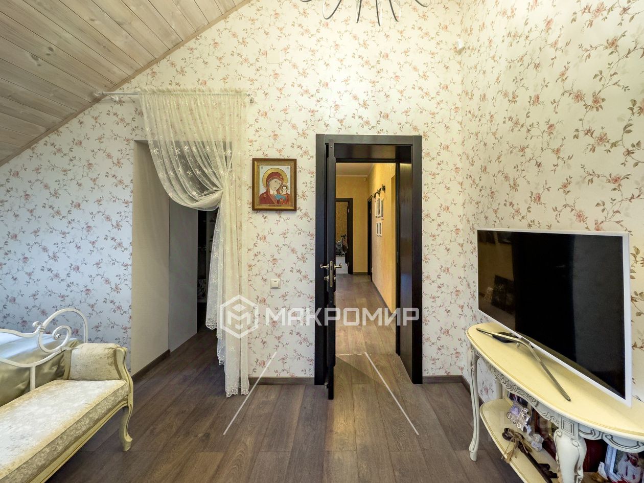 Индивидуальный проект дома тщательно продуман и реализован с вниманием к каждой детали. В доме шесть комнат. 1й этаж: Полностью оборудованная кухня, Гостиная с камином, Спальня, Летняя веранда с панорамными окнами, Сауна с душевой кабиной, Санузел, 2й этаж Мастер-спальня с гардеробной и санузлом, Рабочий кабинет, Комната отдыха, Санузел с душевой, Балкон