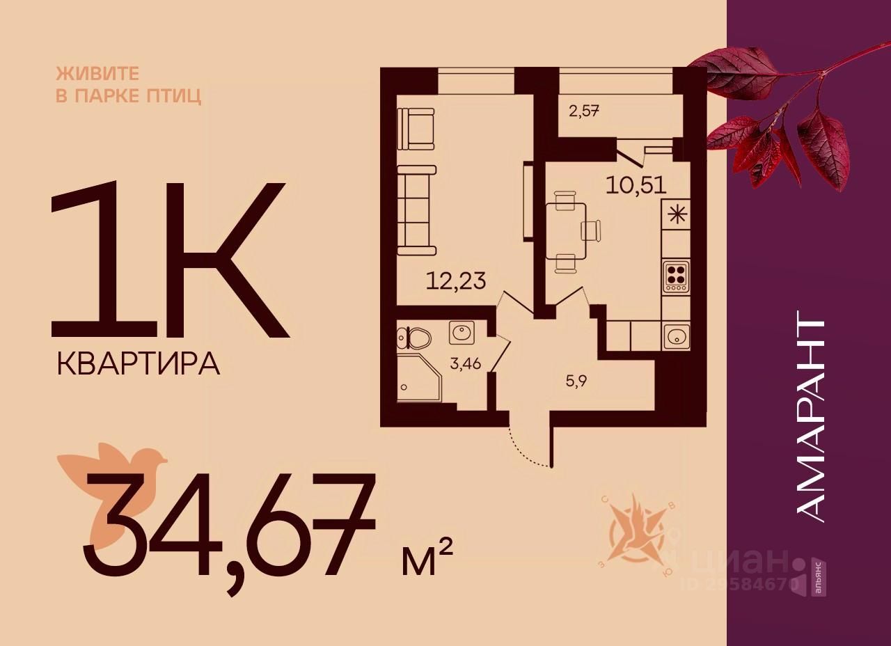 Общая площадь34,67 м2