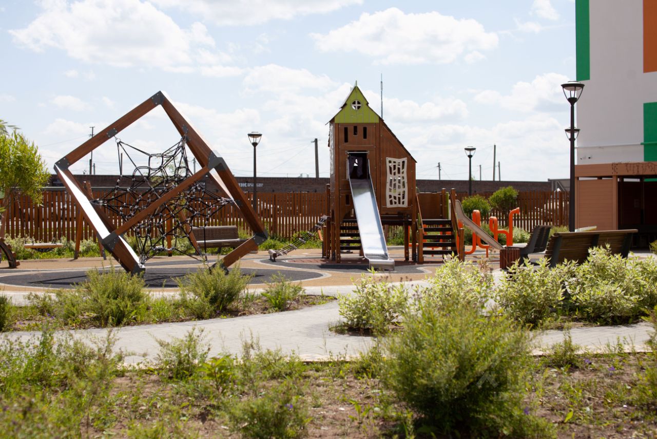 Грамотное зонирование - часть двора закрыта от машин. Вы сможете безопасно попасть на детские и спортивные площадки, не выходя на парковку и проезжую часть.