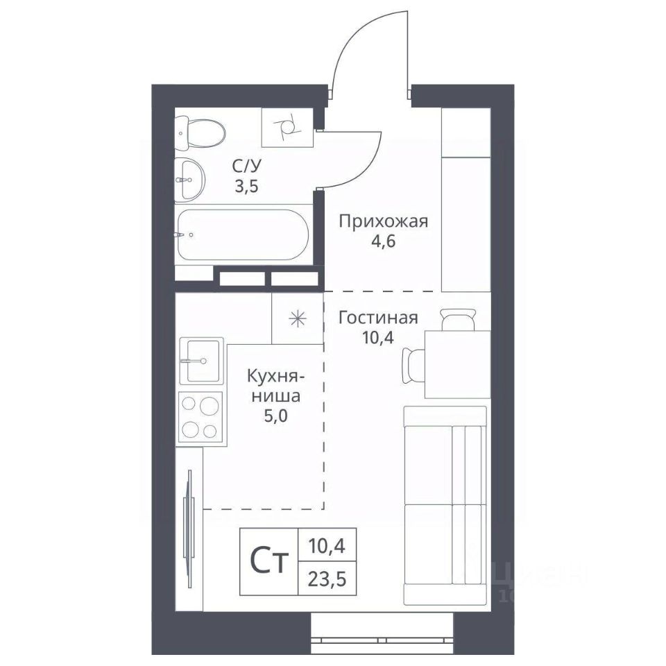 Жилая площадь10,4 м2
