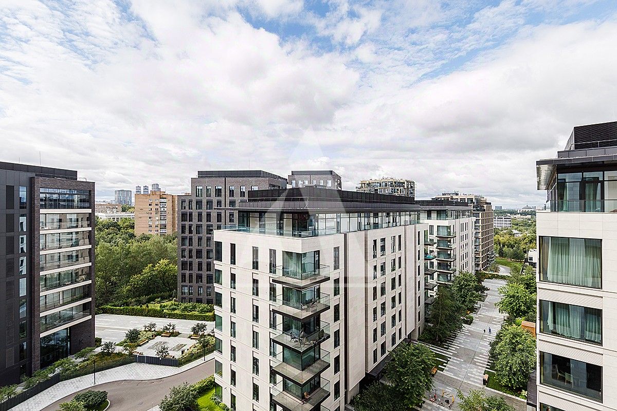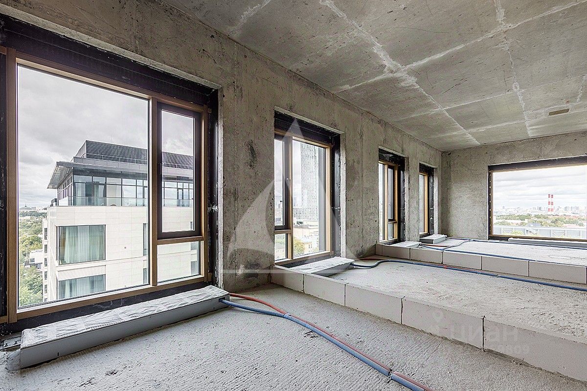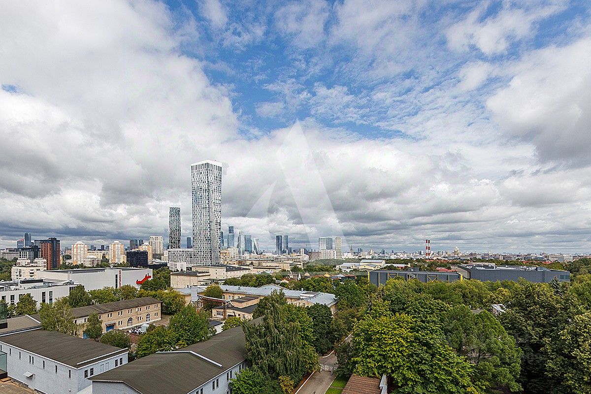 Высокие потолки, панорамные окна. Виды из окон на Мосфильм и в сторону центра.