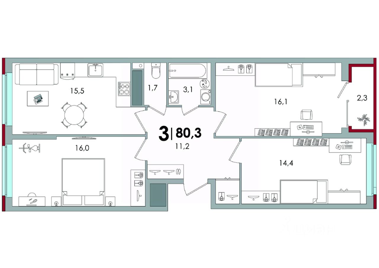 Общая площадь79,7 м2