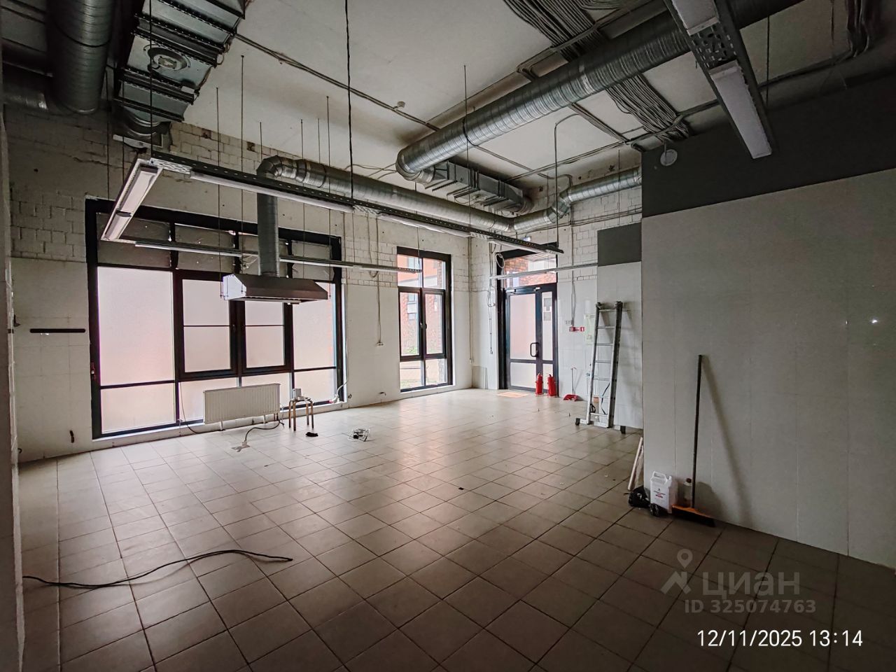 Витринные окна, высокие потолки.