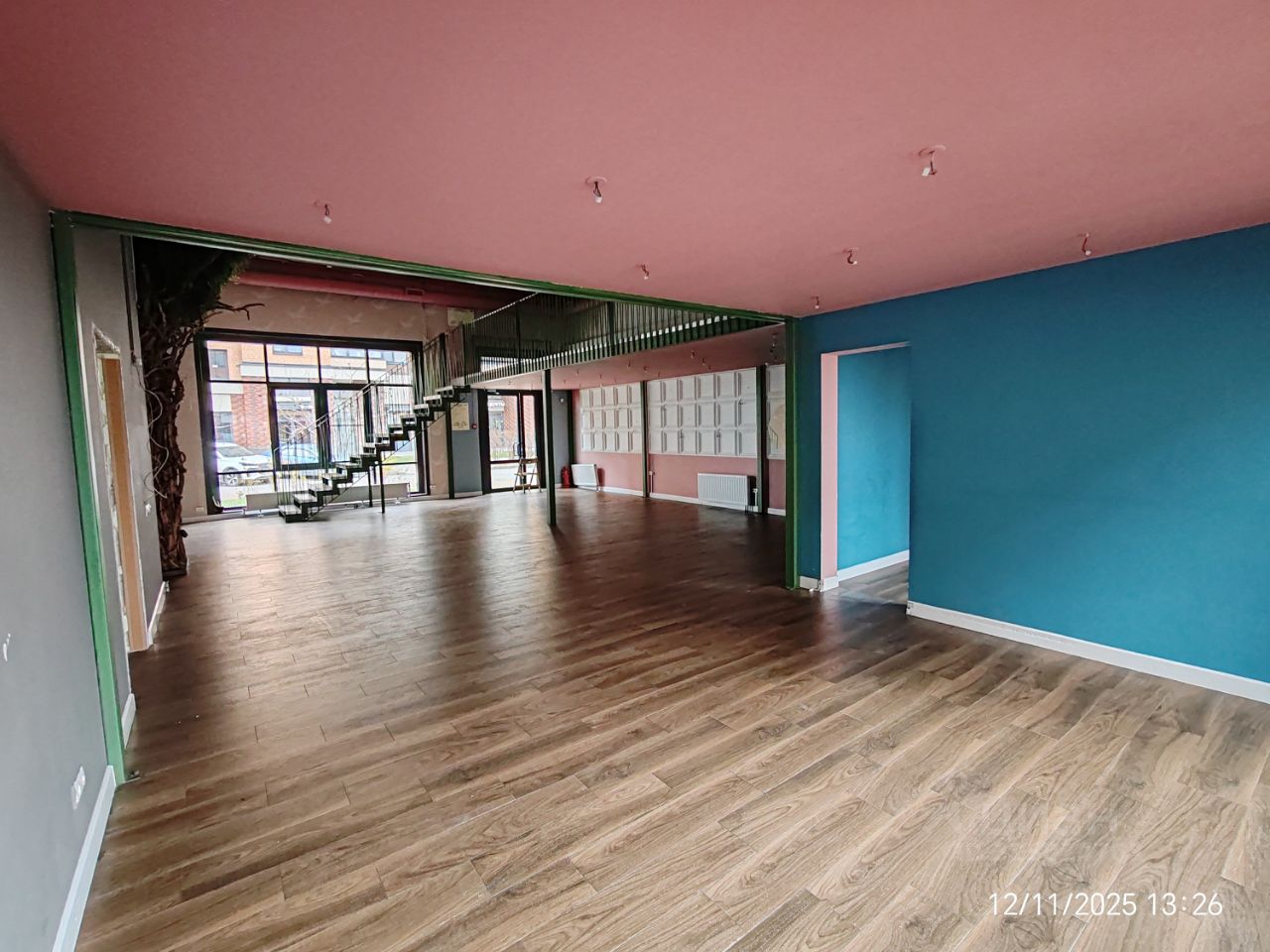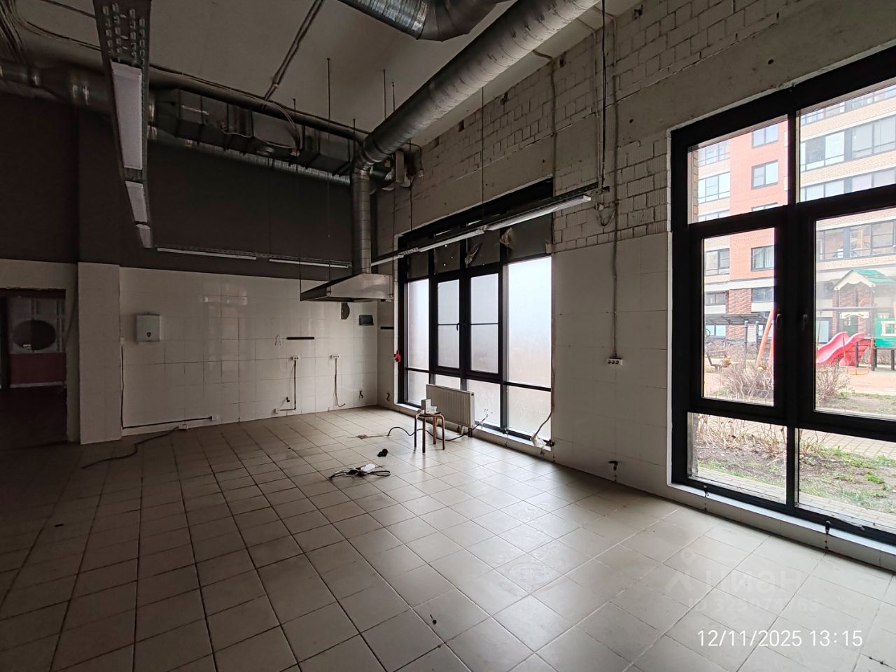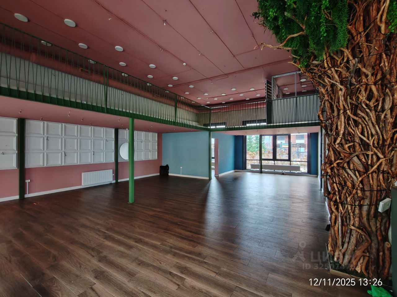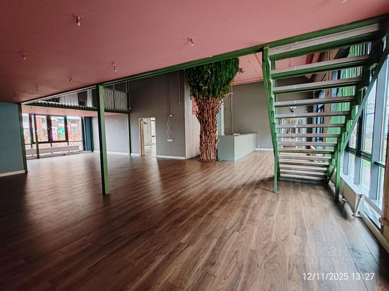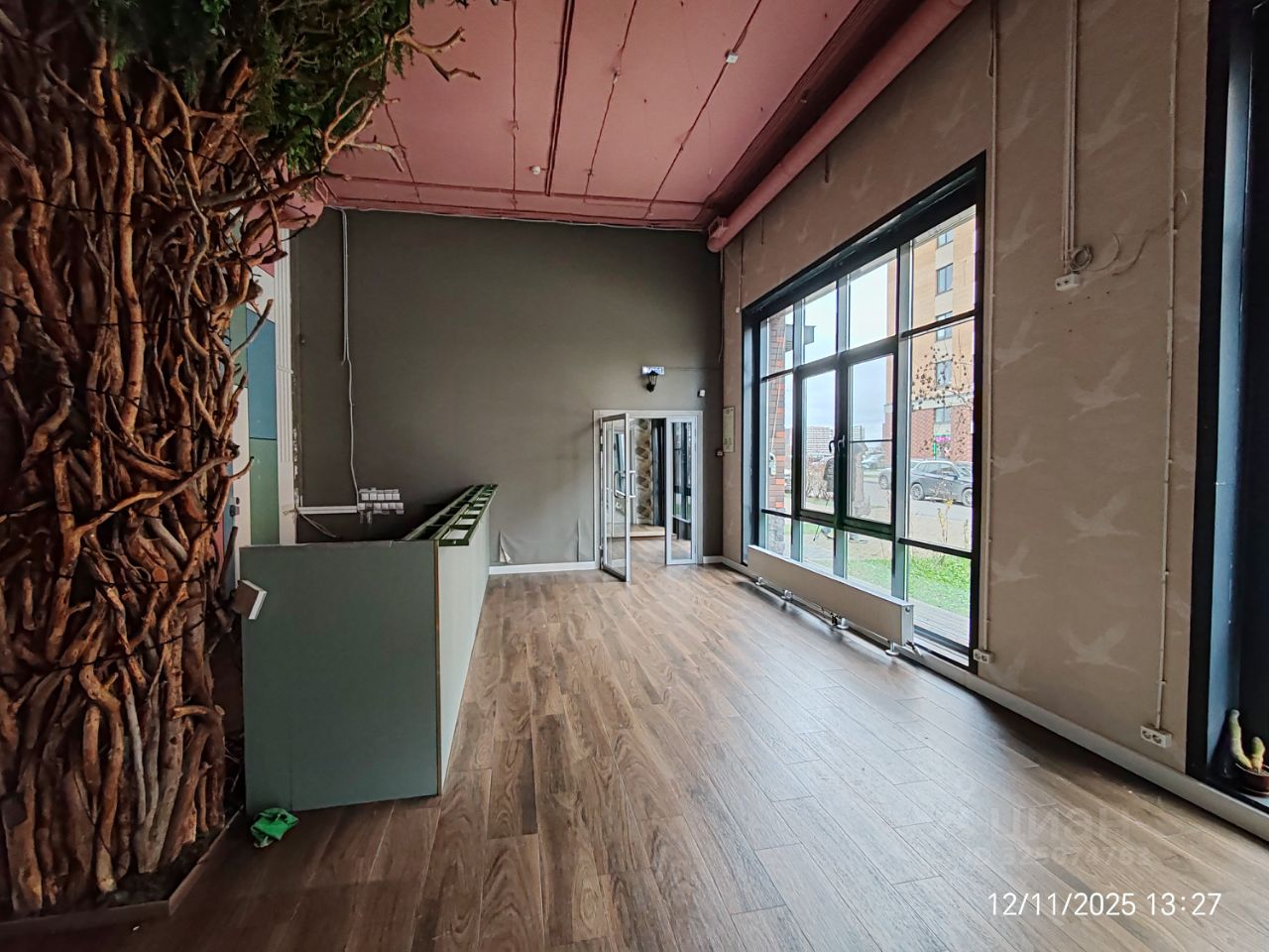 Витринные окна, высокие потолки.