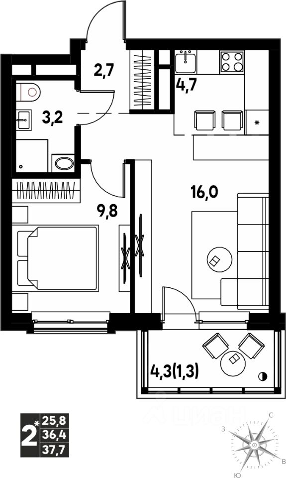 Продаётся студия в строящемся доме (Дягилева, 2), срок сдачи: I-кв. 2026, общей площадью 37.7 кв.м., на 13 этаже. Новый жилой комплекс ''Клубный пригород ''МЫ'' от застройщика ''Девелопмент-ЮГ'' расположен по адресу д. Кондратово, пр-т Дягилева, 4.