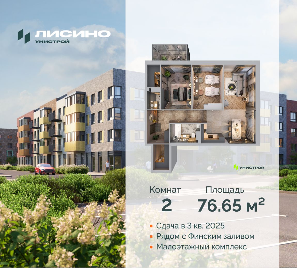 Лисино ''Лисино'' город-парк в Курортном районе Санкт-Петербурга от компании ''Унистрой''. Рядом Финский залив, экопарк, озеро, а также самый высокий небоскреб в Европе. Комплекс отличает чистый воздух, малоэтажная застройка, фасады из клинкерной плитки, уютные дворы, прогулочный бульвар, парковые зоны. Представлено разнообразие планировок: от студий, до двухуровневых квартир. Живите там, где другие отдыхают Город-парк ''Лисино'' находится в Курортном районе Санкт-Петербурга, в 15 минутах езды по Приморскому шоссе от станции метро ''Беговая''. Рядом Финский залив с благоустроенным пляжем, экопарк, озеро Сестрорецкий разлив и ''Лахта Центр''. Локация славится морским воздухом и хвойными лесами.