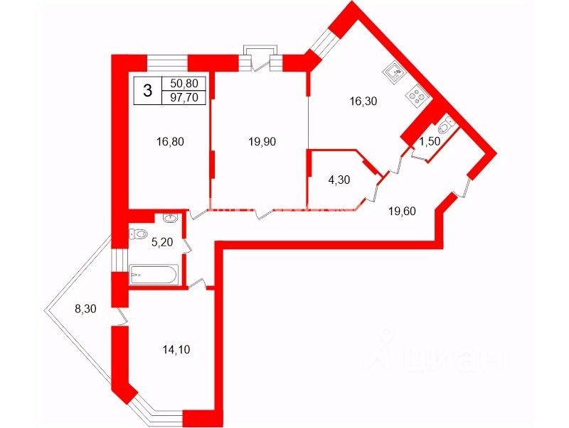 Номер объявления: 20822 - назовите его оператору. Продаётся элитная 3-комнатная квартира 98 м2 в доме бизнес-класса у метро ''Горный институт''.