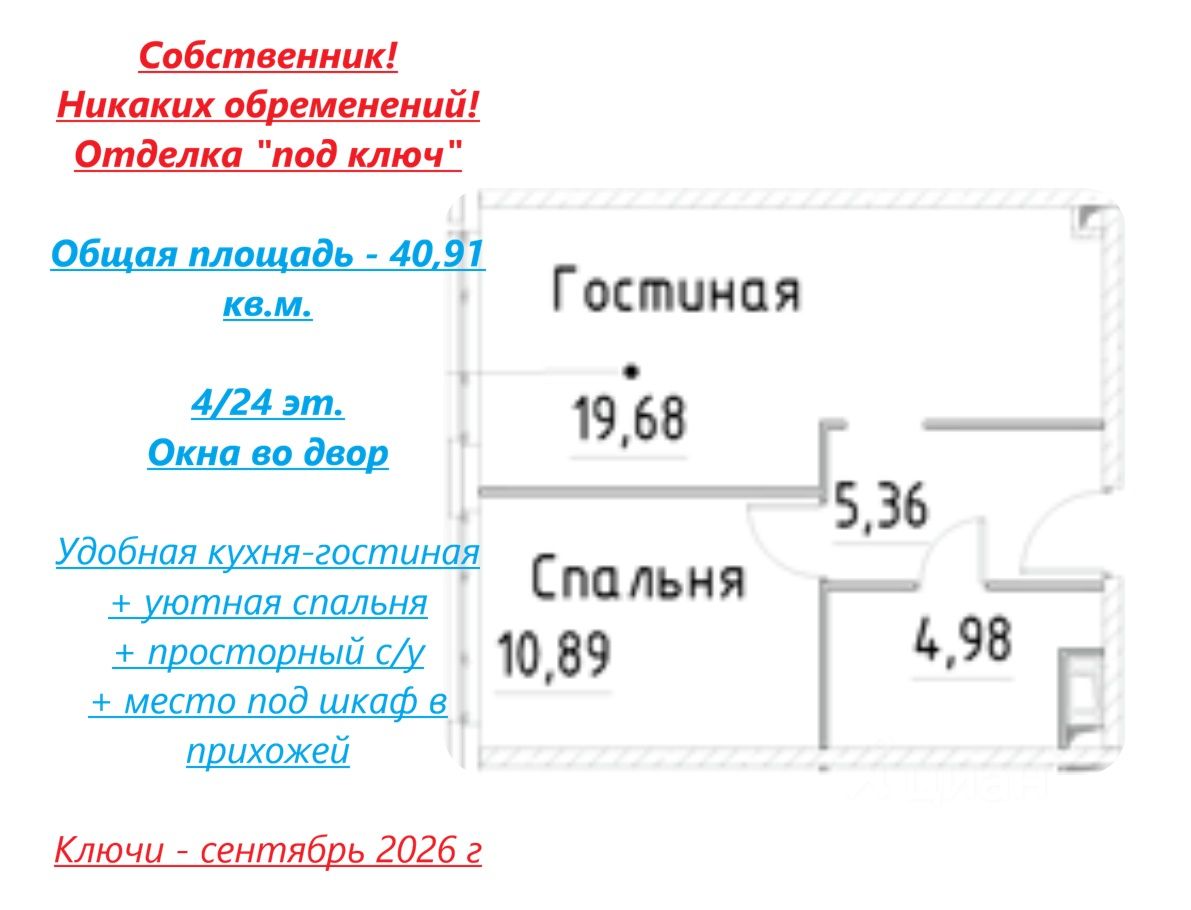 Планировка — самая ликвидная и понятная в проекте (любят арендаторы и покупатели): — спальня 10,89 м² — кухня-гостиная 19,68 м² (удобно зонируется) — большой с/у 4,98 м² (влезет и ванна/душ, и стиралка — места много, можно менять по вашему желанию) — прихожая ~5 м² (и под шкаф/хранение и где развернуться, раздеться) Отделка ПОД КЛЮЧ — мебель/кухню поставили и вперёд