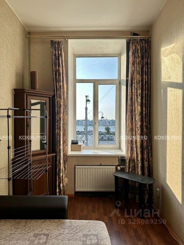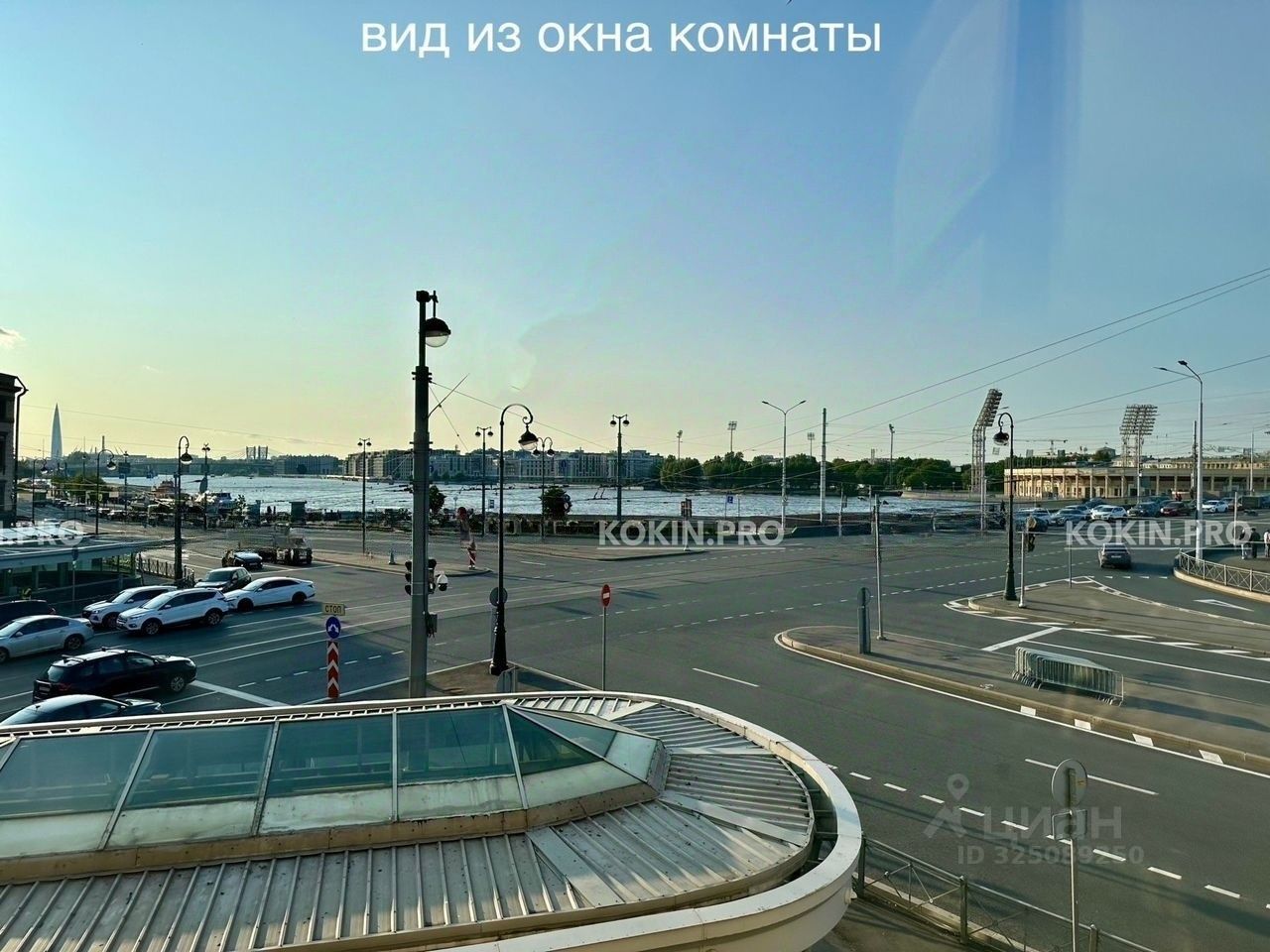 О Комнате: Комната 18 кв. М. Прямоугольной формы. Высота потолков 3.2м. Окно выходит на реку Нева и Петровский стадион. В комнате сделан ремонт (Установлено пластиковое окно, ламинат на полу, стены выровнены и поклеены обои, установлена металическая входная дверь).