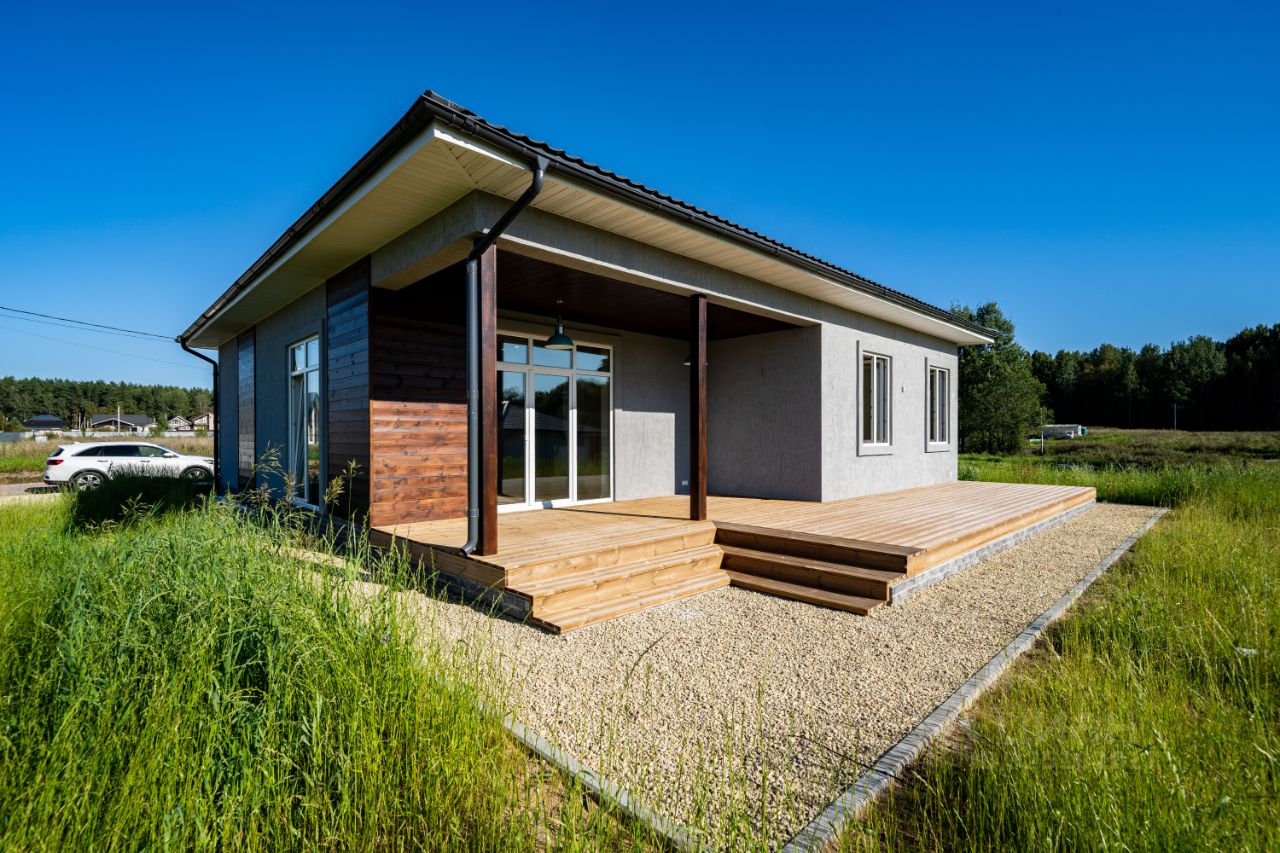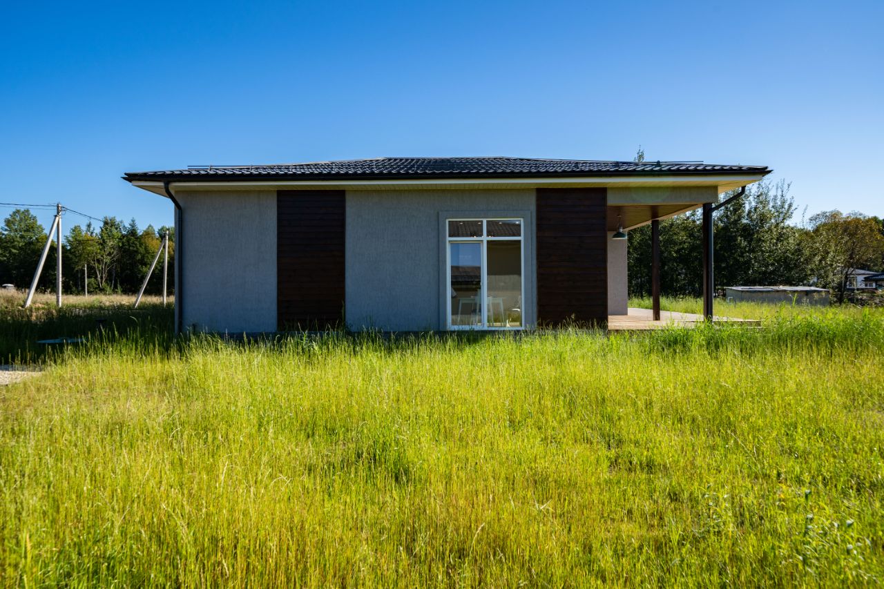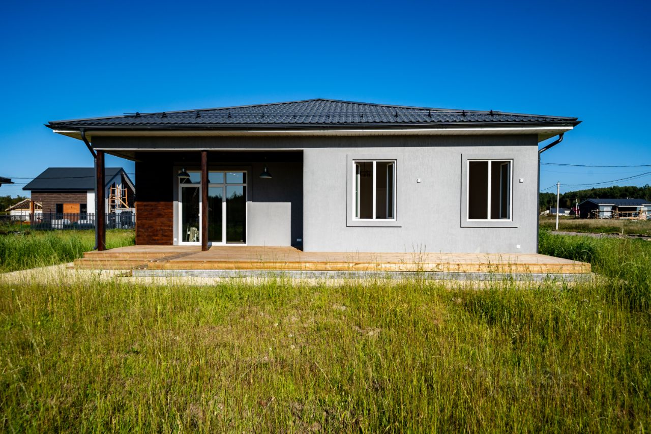Планировка: - площадь дома- 155 м.кв., -площадь закрытой террасы- 14,7 м.кв, площадь открытой террасы- 22 м.кв., -большая кухня- гостиная с панорамными окнами в пол -три спальни - две гардеробные - два санузла -котельная