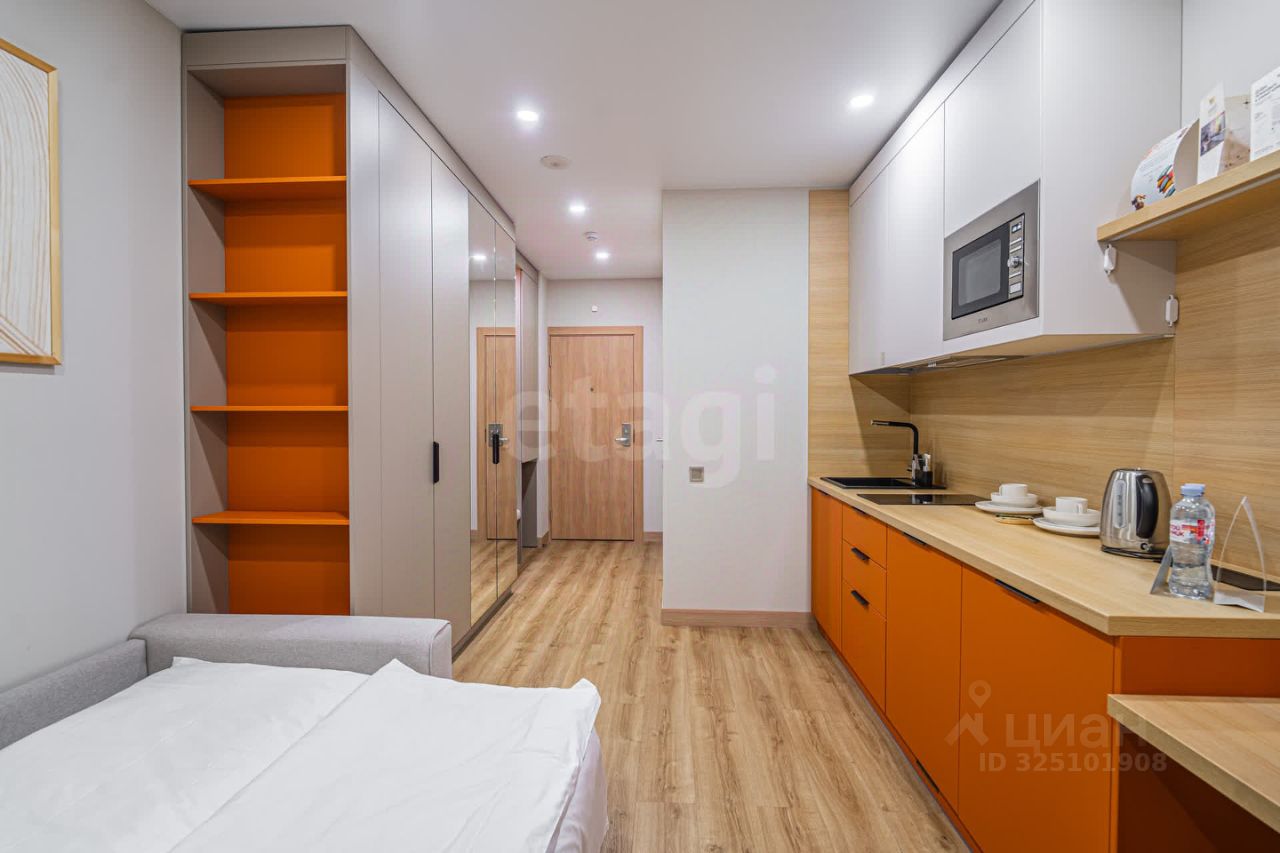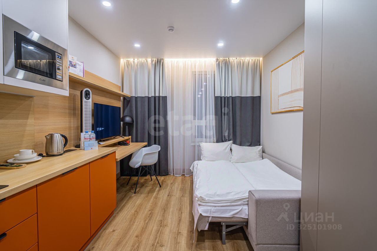 Уютная и комфортная студия на 7 этаже, общей площадью 19.5 км.в, оборудована всем необходимым для комфортной жизни, включая качественную отделку и современные коммуникации.