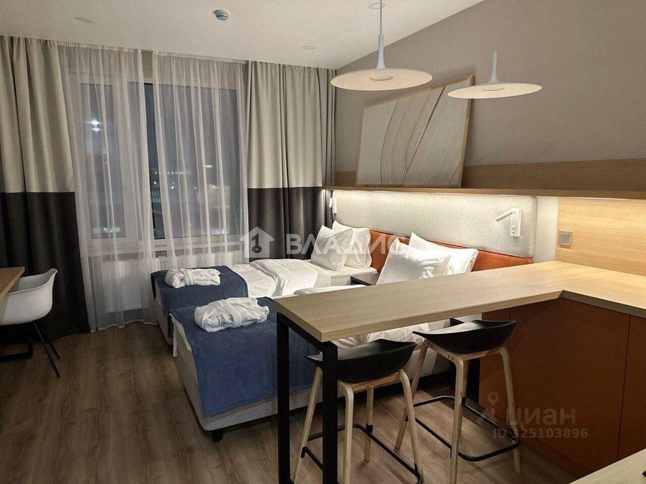 Апартаменты расположены на 5 этаже современного 10-этажного кирпично-монолитного дома, построенного в 2024 году. Высокие потолки (2,7 м) создают ощущение простора, а окна, выходящие на улицу, обеспечивают отличное естественное освещение. Квартира имеет общую площадь 27 кв. м, площадь комнаты — 22,41 кв. м.