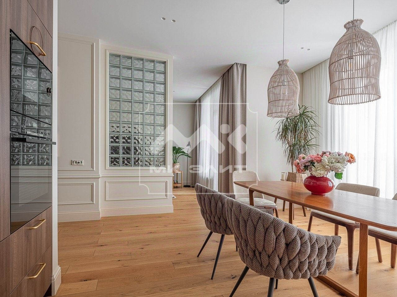 Особенности квартиры: - Качественный ремонт: Квартира выполнена с современным дизайном, с использованием качественных материалов. - Вся необходимая бытовая техника: Вся техника уже установлена, что позволяет заселяться сразу после покупки. - Стильная мебель: Интерьер дополнен дизайнерской мебелью, что подчеркивает высокий уровень жилья. - Прекрасный вид из окон: Квартира расположена на 11 этаже с двухсторонней ориентацией окон, что обеспечивает панорамные виды и обилие естественного света.