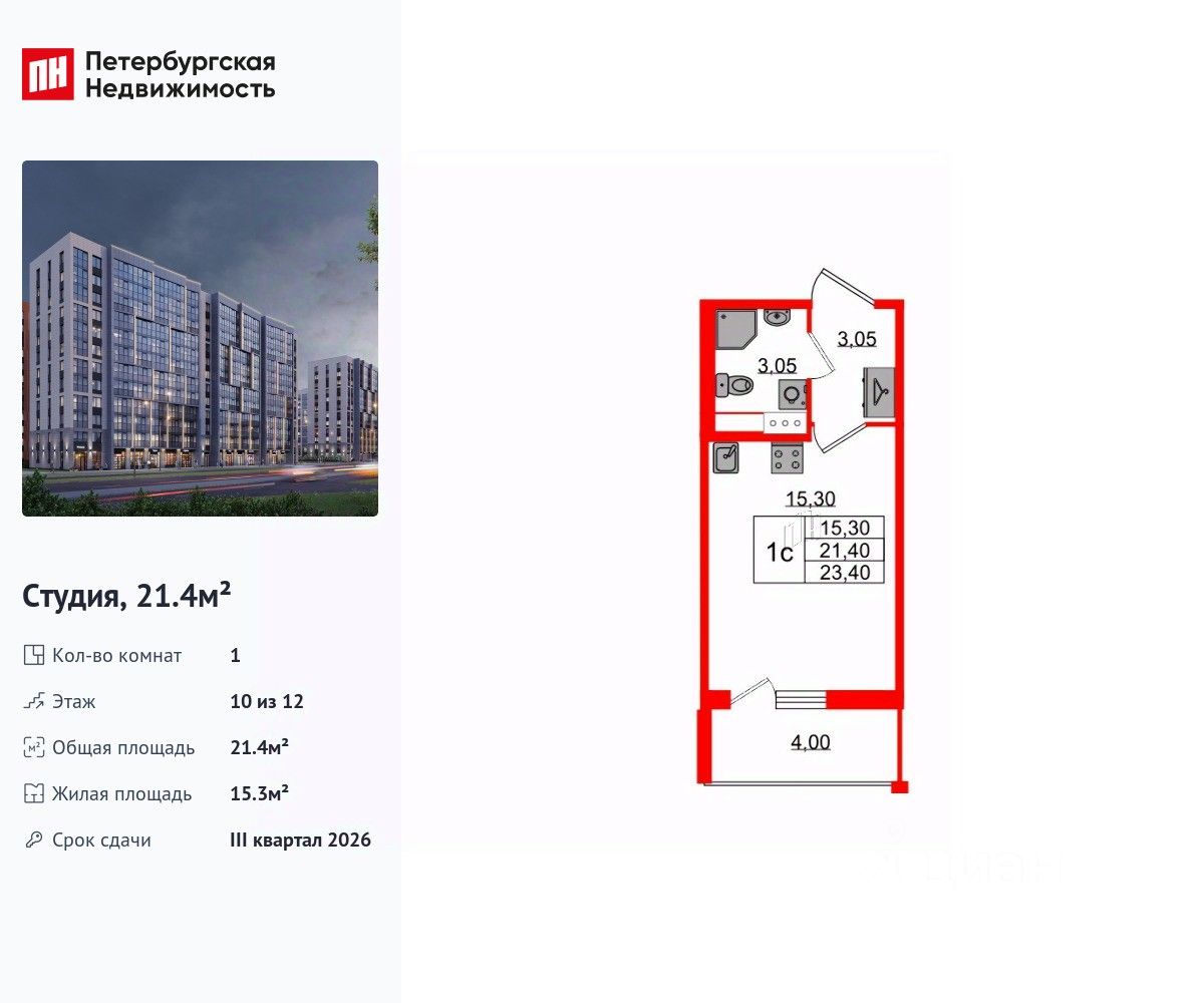 Продается уютная студия от застройщика в жилом комплексе ''Бионика Заповедная'' в динамичном Приморском районе.