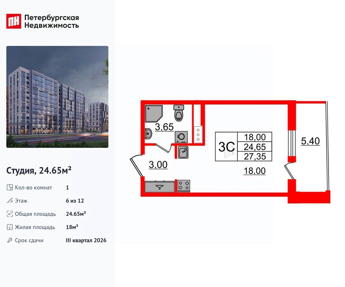 Продается просторная студия от застройщика в жилом комплексе ''Бионика Заповедная'' в динамичном Приморском районе.