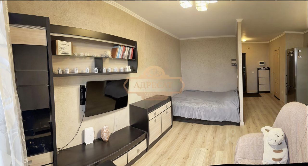 Просторная зона с огороженным спальным местом 160х200 см и раскладным диваном 140х200 см. Отдельная очень вместительная гардеробная. Окна на солнечную сторону. Вся мебель и техника, включая кухню, остаются.