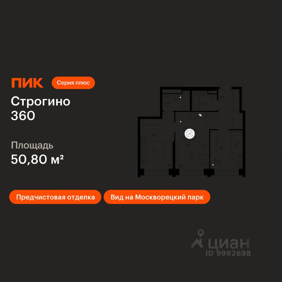 Новостройка! Продается 2-комн. кв-ра площадью 50,8 кв.м, (Корпус 1.2, Секция 1) 16 этаж 30-этажного дома в Строгино 360 от ПИК. Проект, где каждый день будет наполнен гармонией и новыми возможностями, где можно найти идеальный баланс между энергией большого города и спокойствием природного окружения. Это настоящая экосистема в окружении четырех парков и набережной Москвы-реки, где современная архитектура, умные технологии и продуманная среда создают новое качество жизни. Здесь дом — не точка на карте, а пространство состояния: покоя, сосредоточенности, внутренней свободы.Ты всё ещё в городе. Но ты уже в стороне от его суеты.