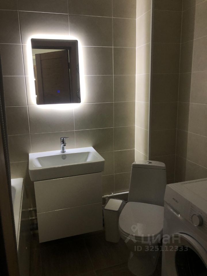 -Совмещённый санузел с ванной, стиральной машинкой, зеркало с подсветкой,