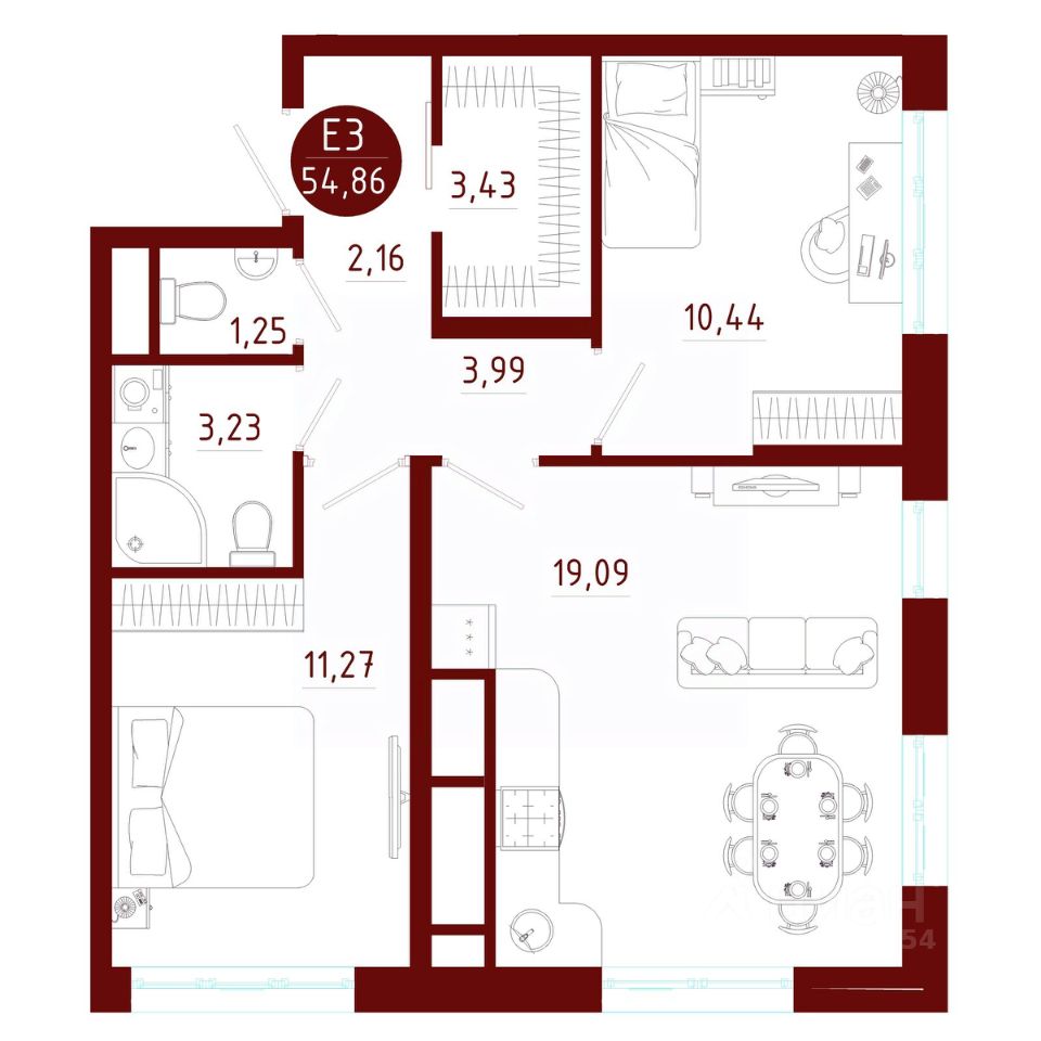 продам 2-к, пр-тпроспектпроезд-го Полка НКВД, 186 691 274 ₽