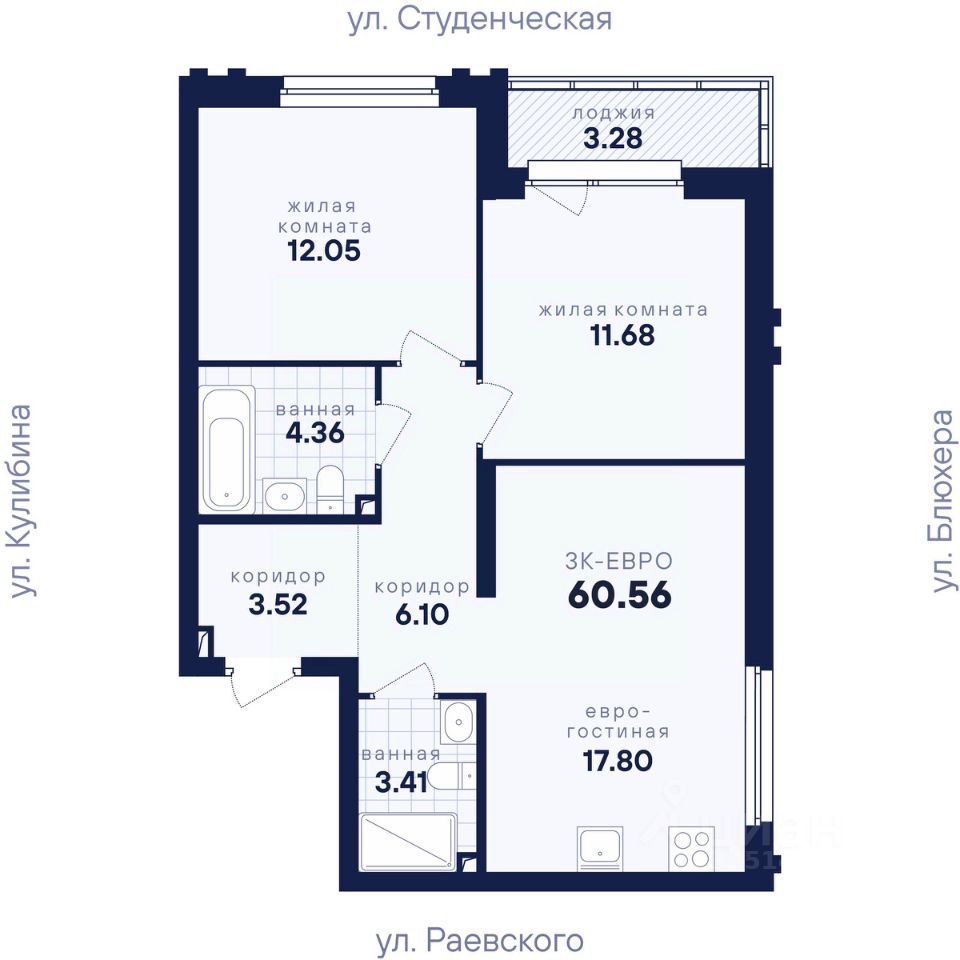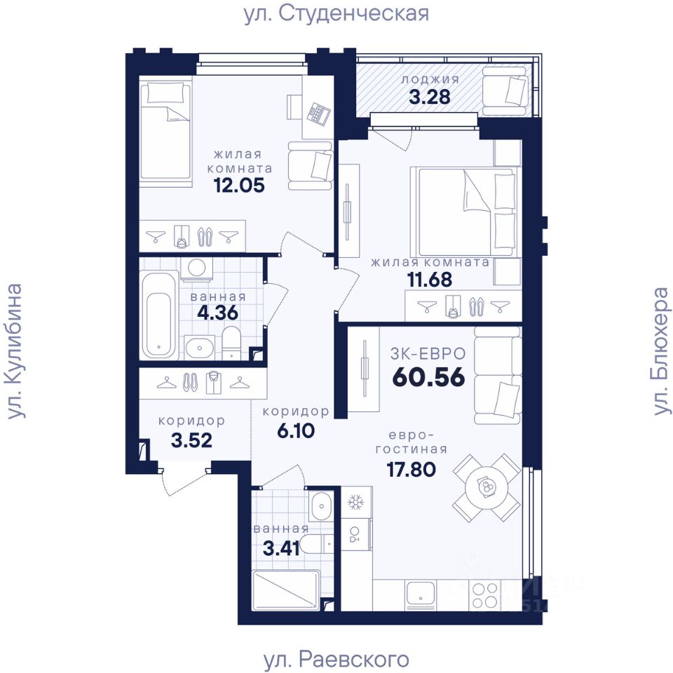Общая площадь60,56 м2