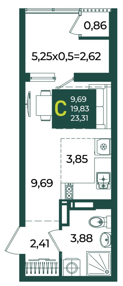 Общая площадь23,31 м2