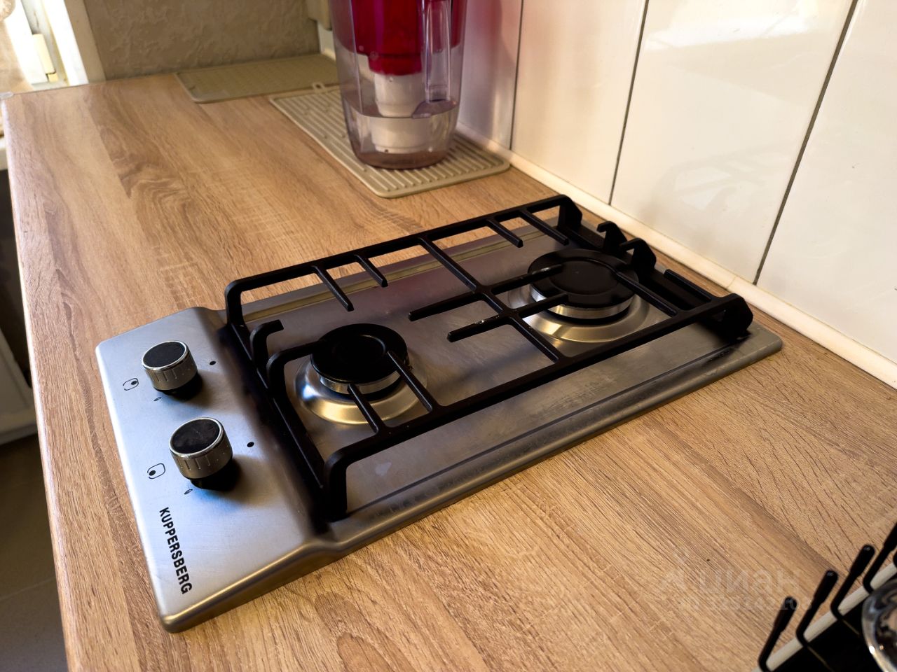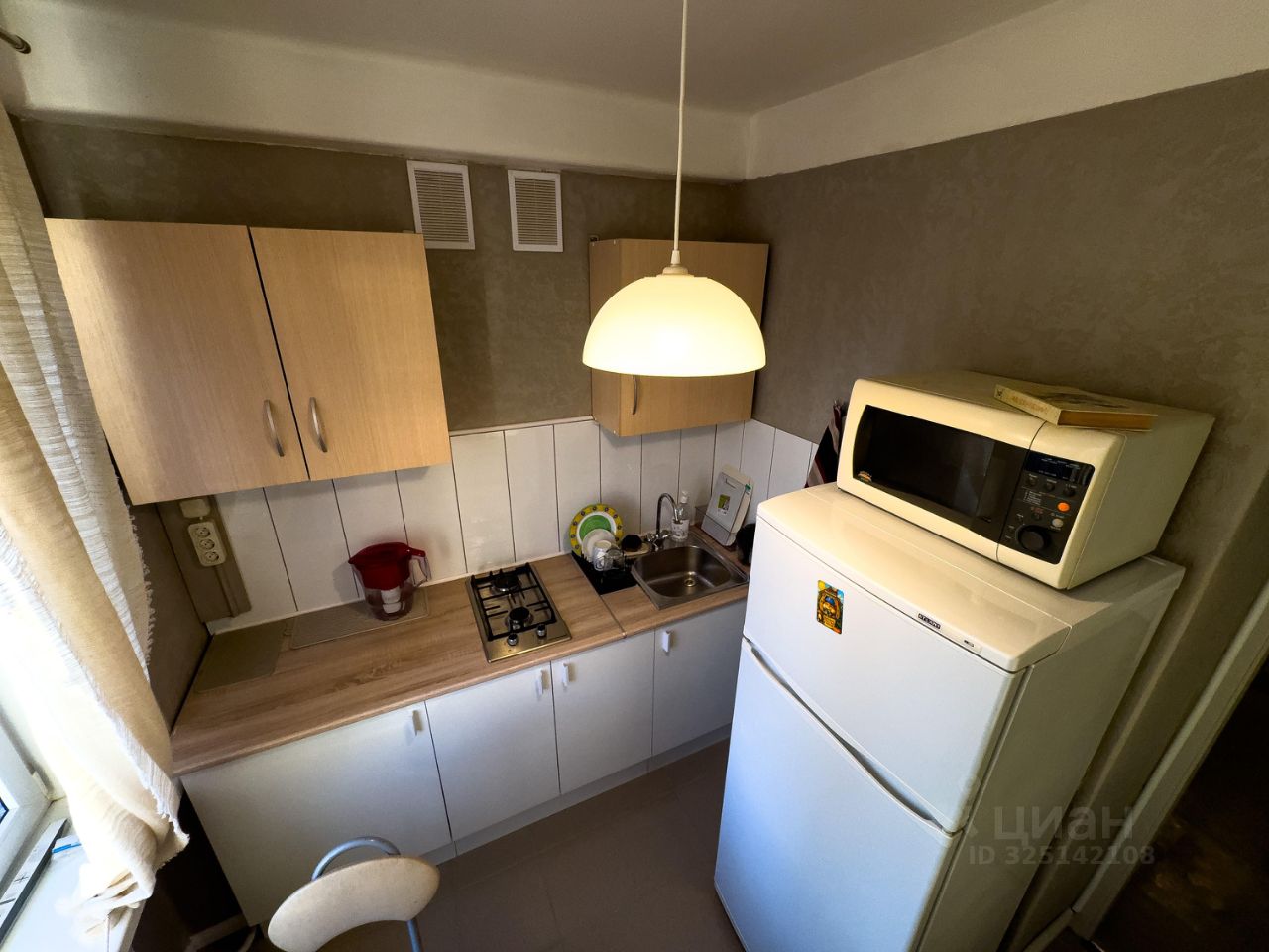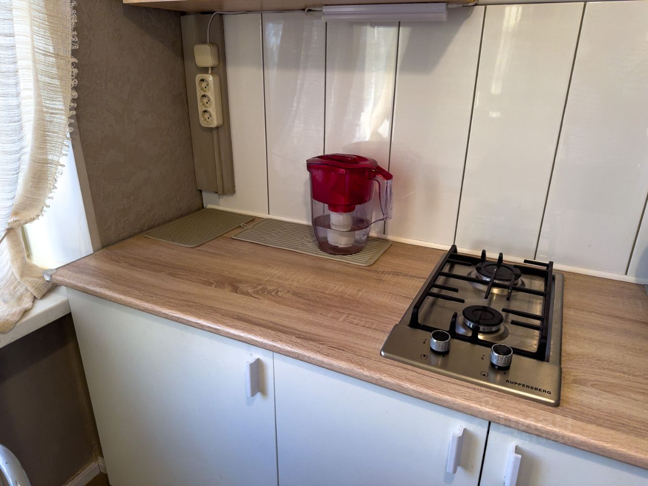 На кухне газовая варочная панель, микроволновка, холодильник с большой морозилкой, стол, стулья. В ванной стиральная машинка, чугунная ванна с обновленным покрытием, полочки, зеркала. В прихожей встроенный шкаф для хозяйственных нужд. Инвентарь для уборки.