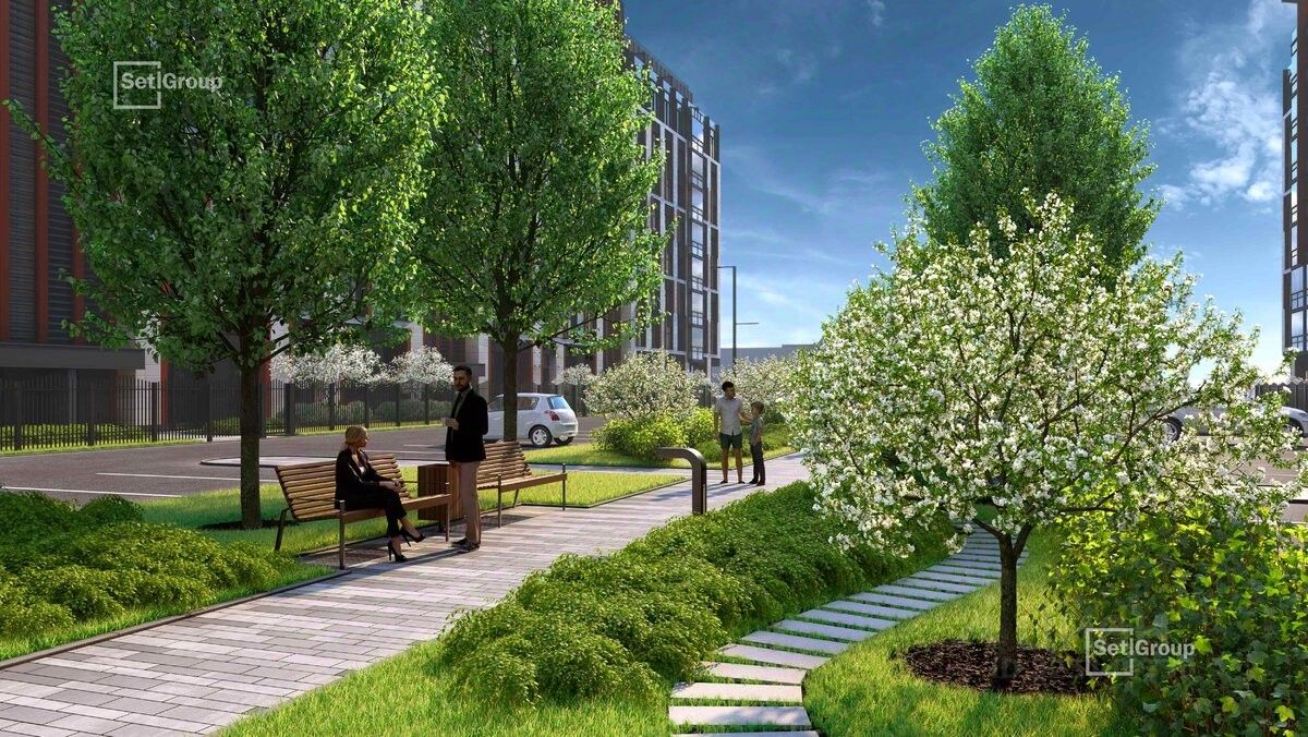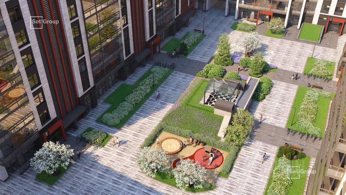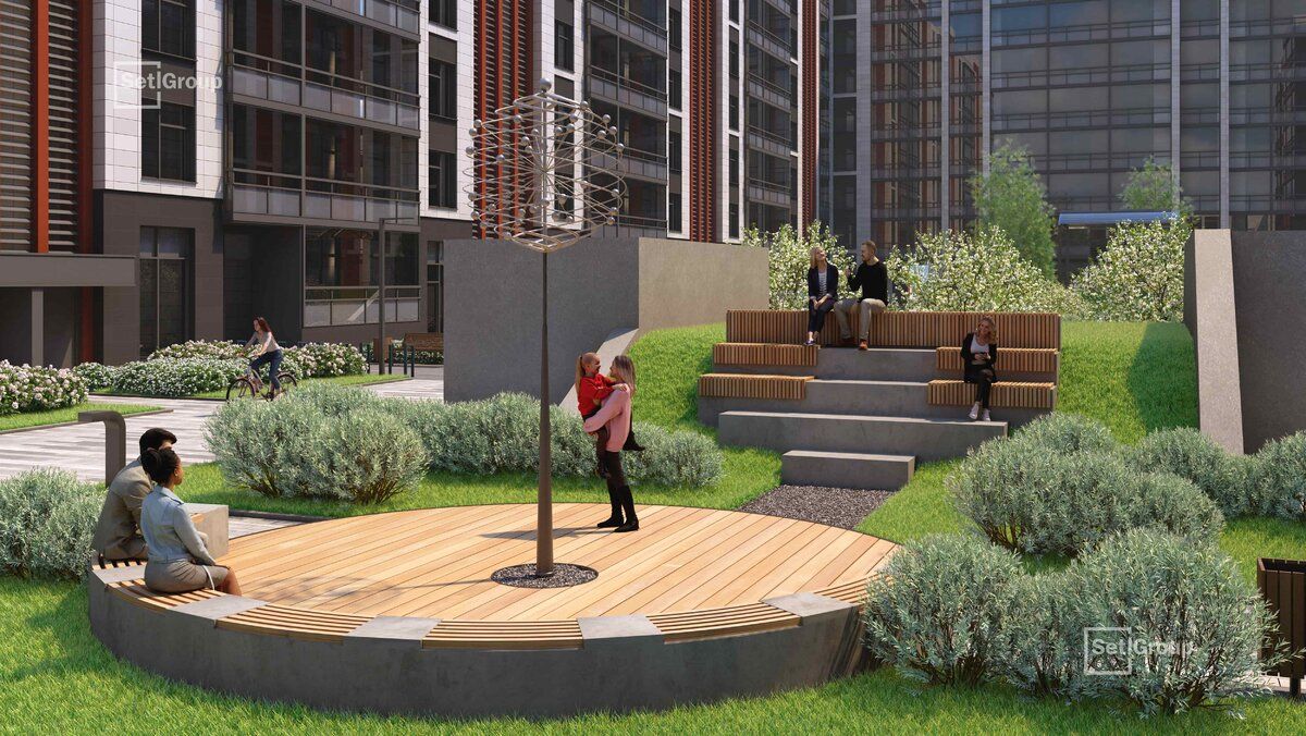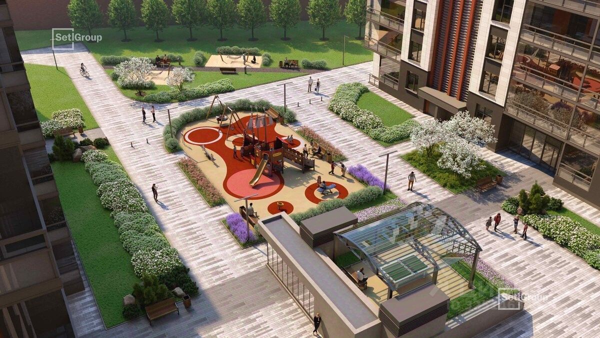 Дворы будут полностью свободны от машин и недоступны посторонним. Для автомобилей предусмотрены многофункциональные подземные паркинги. Здесь расположатся детские и спортивные площадки, всепогодные площадки с навесами для отдыха и игры в настольный теннис. В центре жилого комплекса запланирована пешеходная аллея, а на первых этажах вдоль улицы Александра Матросова откроются объекты премиальной инфраструктуры.