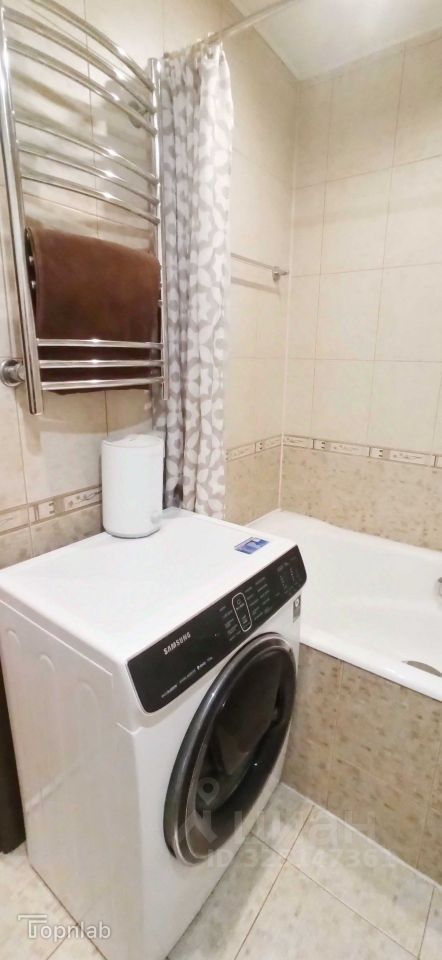 Санузел площадью 4 кв. м. оборудован вместительной шведской чугунной ванной и практически новой стиральной машиной Samsung с дополнительным лючком для догрузки белья - всё для Вашего удобства.