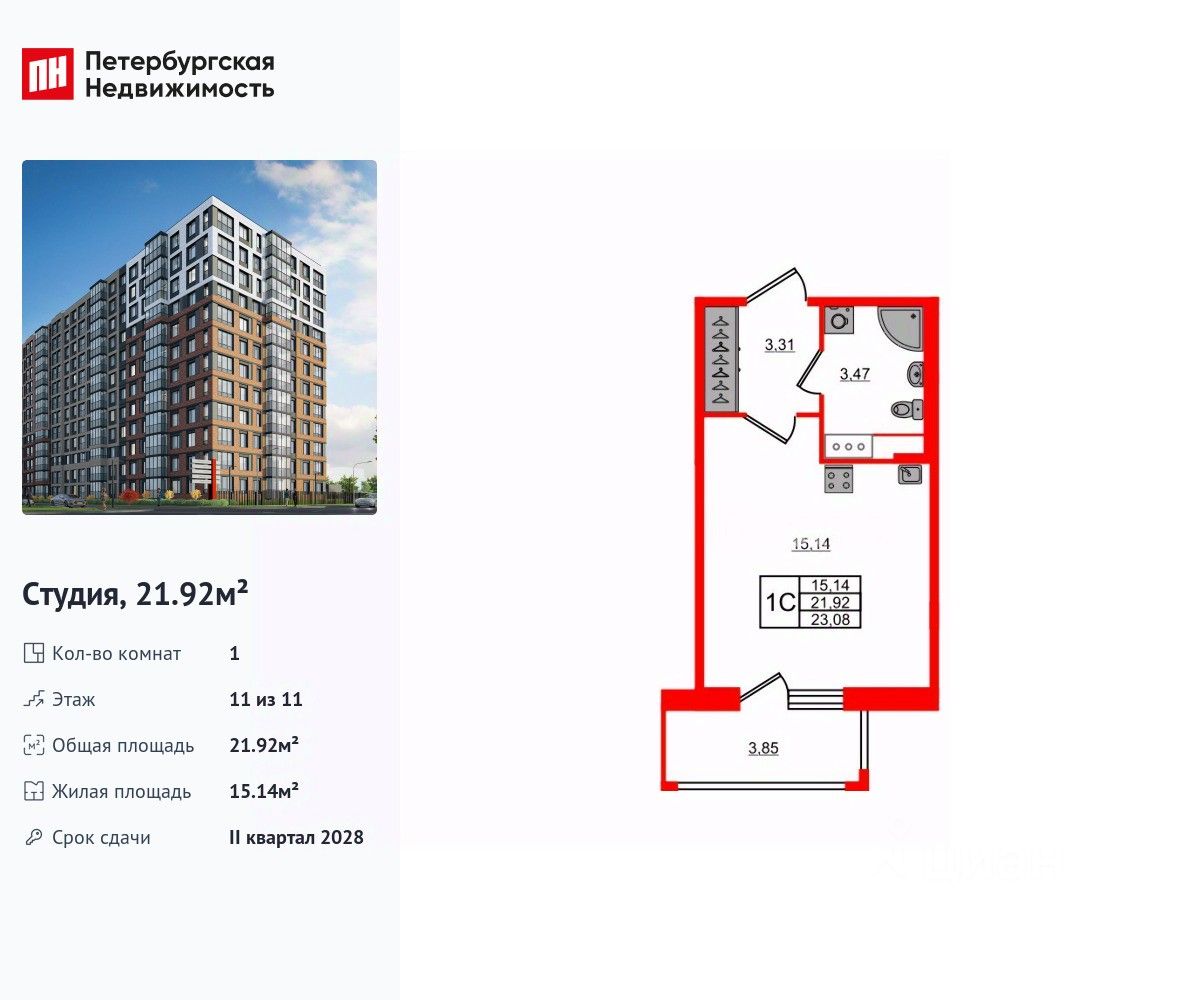 Общая площадь21,92 м2