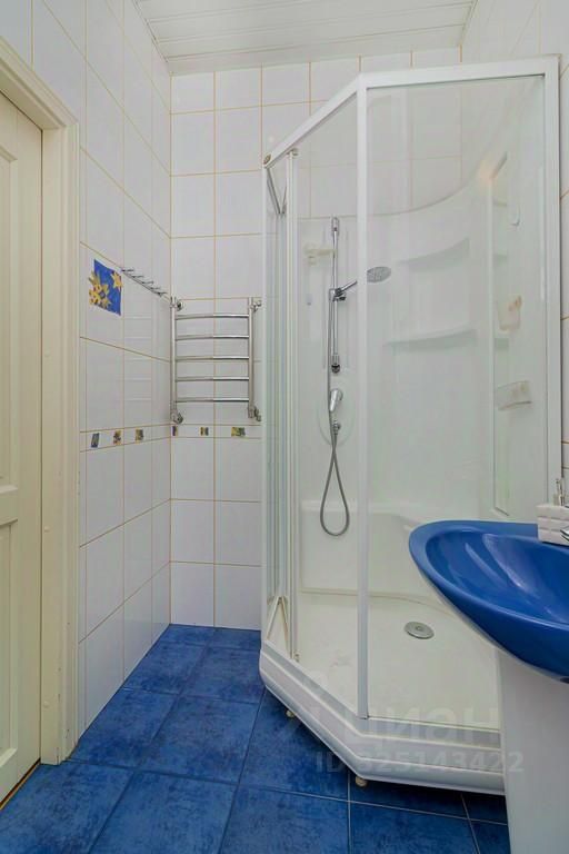 Совмещенный санузел с душевой кабиной оборудован теплым полом и стиральной машиной.