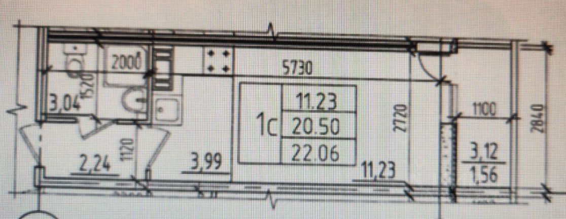 общей площадью 20,5 м2+3,12 м2 лоджия. Правильной квадратной формы кухня и комната, просторный совмещенный снузел