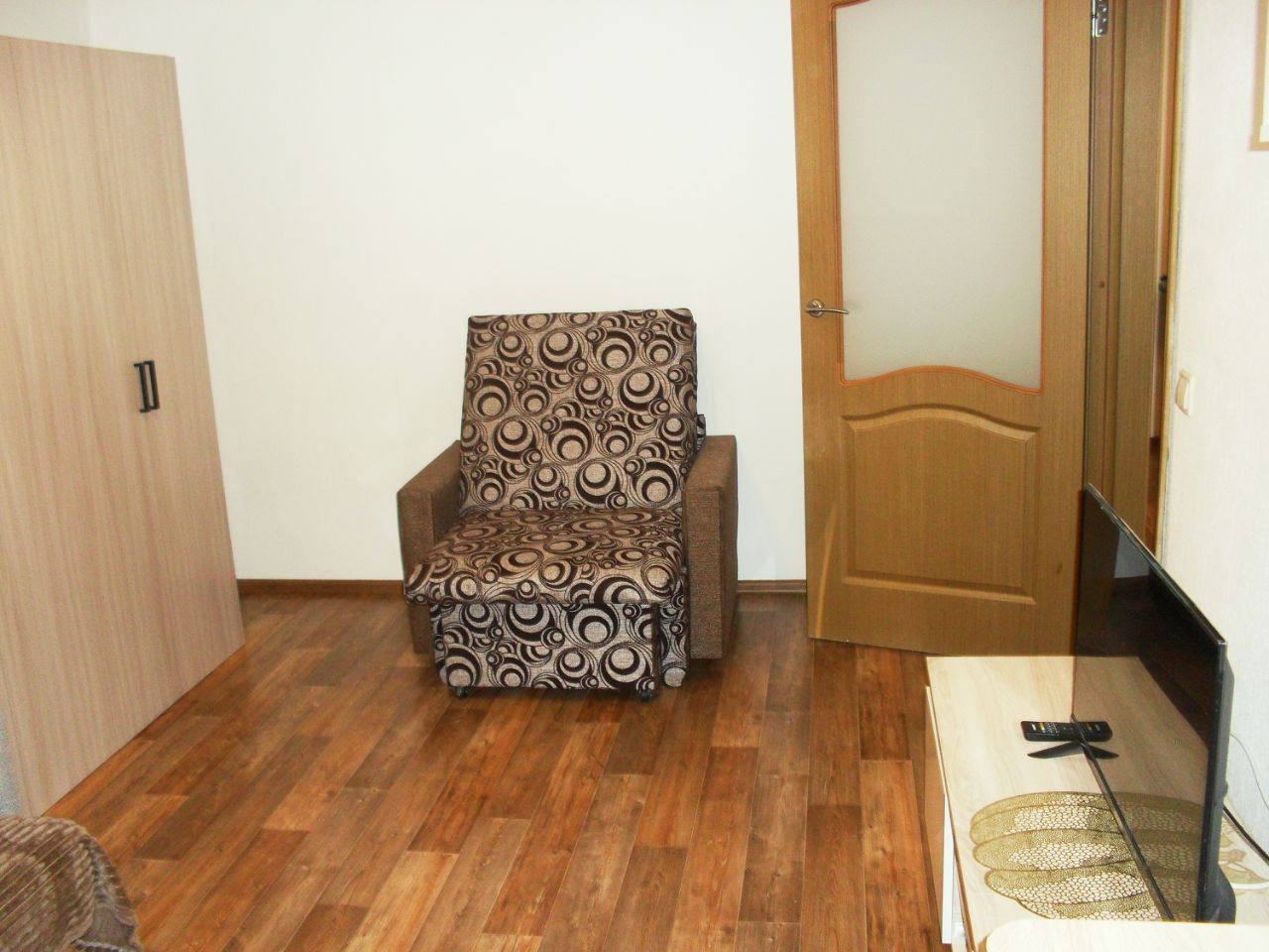 Квартира укомплектована всем необходимым для комфортного проживания: есть кухонный гарнитур, электрическая плита, вытяжка, холодильник, стиральная машина, диван-кровать, кресло со спальным местом, вместительный шкаф, установлен вай-фай