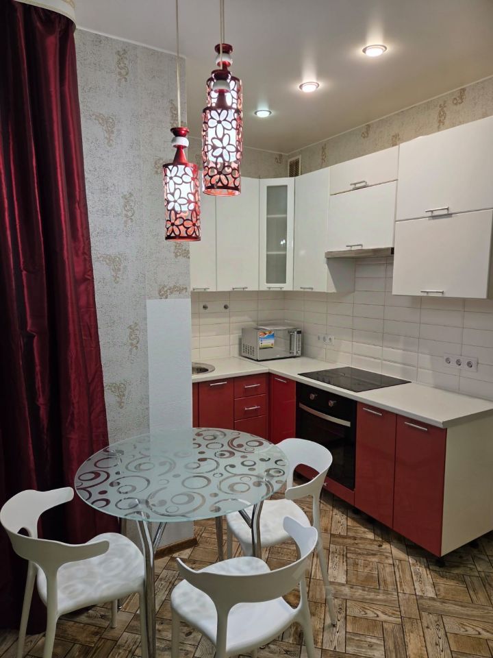 В квартире есть все необходимое для комфортного проживания: современная мебель на кухне и в комнате, кондиционер, холодильник, стиральная машина и телевизор. Ванная комната оборудована душевой кабиной, а наличие лоджии позволит насладиться свежим воздухом. Благодаря дизайнерскому ремонту, здесь уютно и стильно.