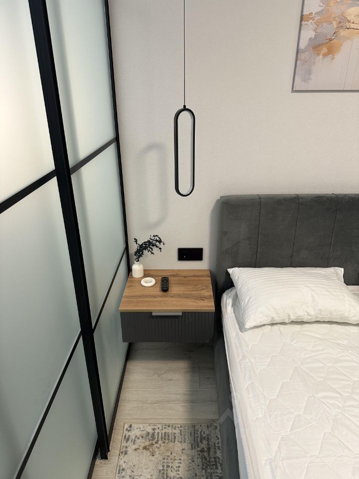 Квартира с новым ремонтом в современном стиле, с матрасом 160х200, высокими потолками и всем необходимым для уютного проживания. Бытовая техника (все новое): стиральная машина, холодильник и морозильные камеры, варочная поверхность, духовой шкаф, вытяжка, микроволновая печь, телевизор, smart tv, фен, колонка Сантехника (все новое): ванная 170 см, смесители, тропический душ, инсталляция, раковина с ящиком для хранения, зеркало с режимом подсветки Освещение (все новое): множество сценариев освещения любой части квартиры. Контурная подсветка потолка, споты, бра, люстры. Теплота и яркость регулируется с пульта Мебель (все новое): в ванной, зоне кухни, на балконе, в спальне и прихожей. Ортопедический матрас кровати обеспечит наивысший комфорт сна. Огромный шкаф от пола до потолка. Дополнительная зона хранения под кроватью с подъемным механизмом Балкон: утепленный, остекленный. С зонами отдыха и доп хранения Зонирование: в квартире удалось эргономично разделить пространство на прихожую, ванную, зону кухни-столовой, спальню, туалетный столик/рабочие место. Раздвижные стены помогают разделить пространство под нужды и настроение