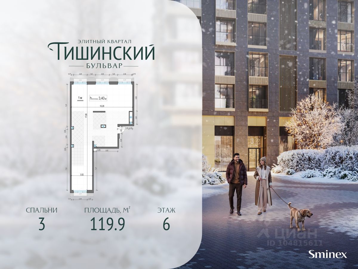 В продаже 3-комнатная квартира квартира в элитном квартале ''Тишинский бульвар''. Общая площадь квартиры - 119.90 кв.м. Этаж 6 из 9. Корпус 8С1.