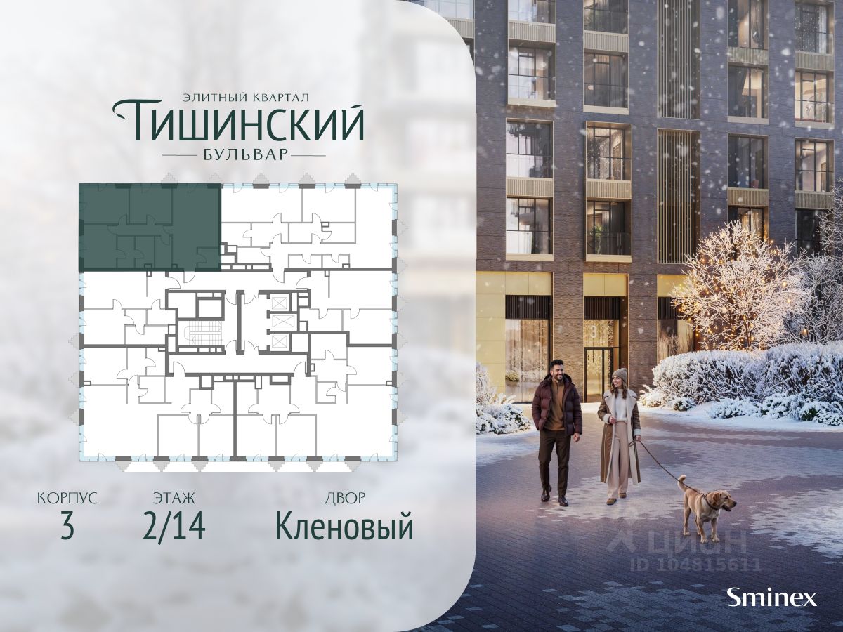 В продаже 3-комнатная квартира квартира в элитном квартале ''Тишинский бульвар''. Общая площадь квартиры - 96.20 кв.м. Этаж 2 из 14. Корпус К3.