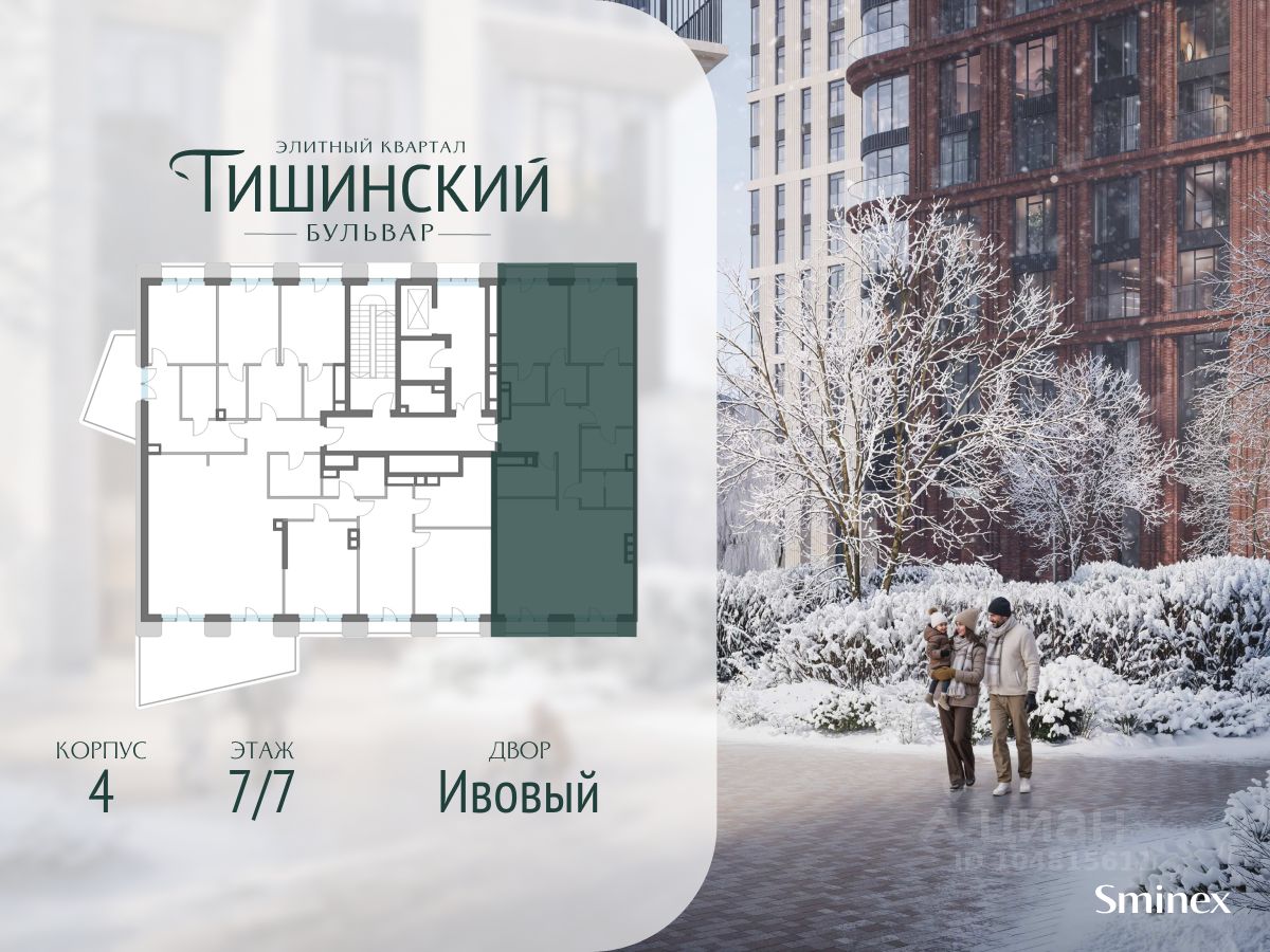 В продаже 3-комнатная квартира квартира в элитном квартале ''Тишинский бульвар''. Общая площадь квартиры - 119.60 кв.м. Этаж 7 из 7. Корпус К5С4.