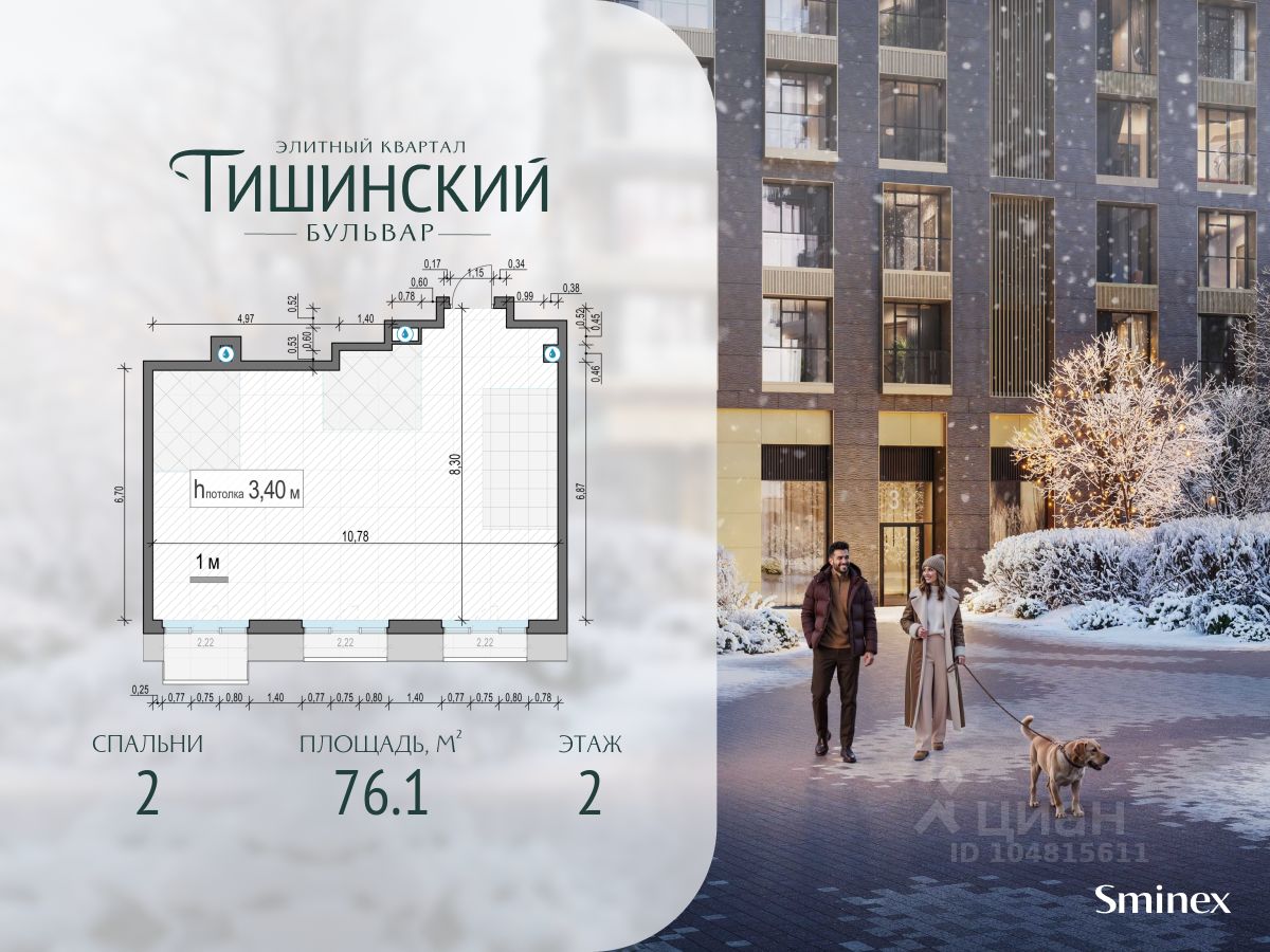 В продаже 2-комнатная квартира квартира в элитном квартале ''Тишинский бульвар''. Общая площадь квартиры - 76.10 кв.м. Этаж 2 из 9. Корпус 8С2.