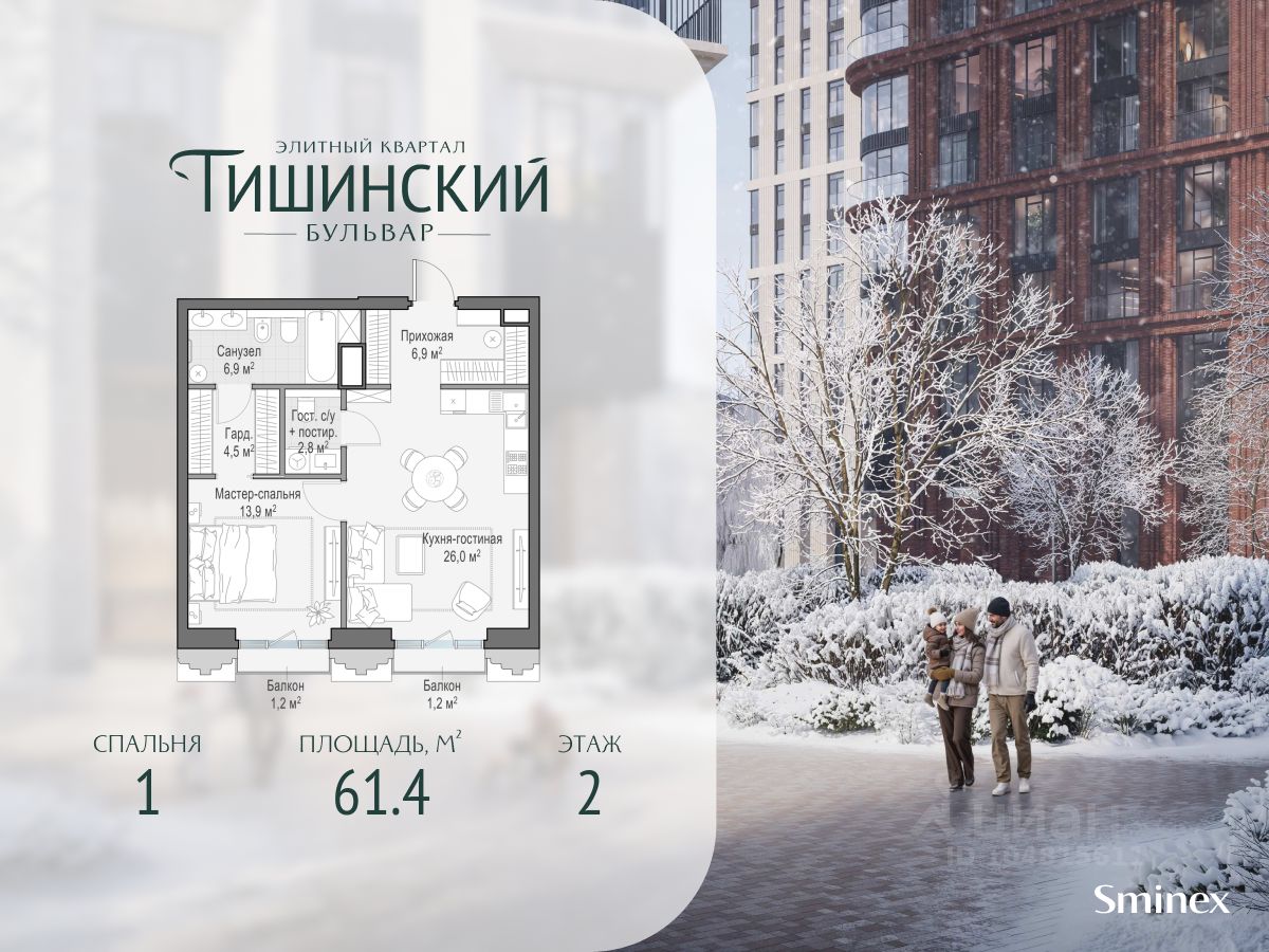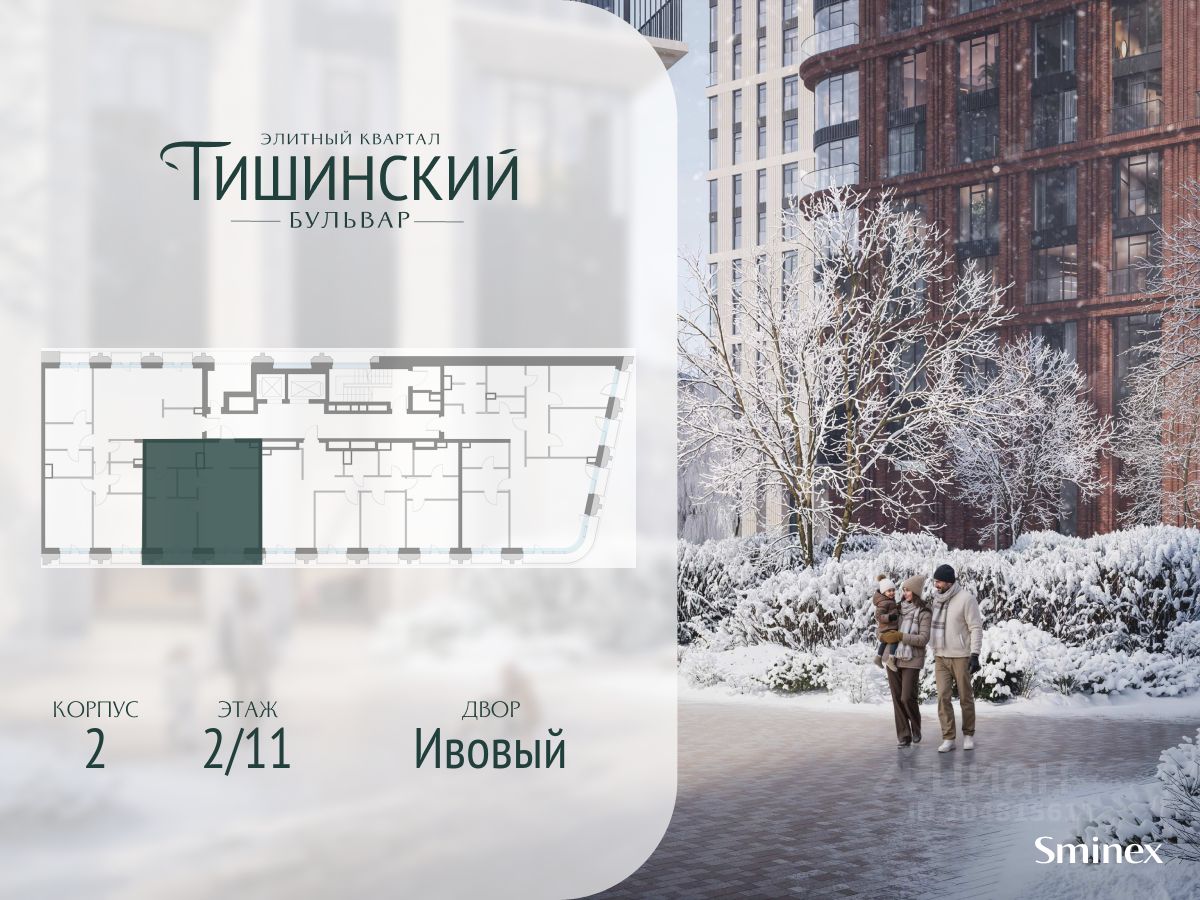 В продаже 1-комнатная квартира квартира в элитном квартале ''Тишинский бульвар''. Общая площадь квартиры - 61.40 кв.м. Этаж 2 из 11. Корпус К4С2.