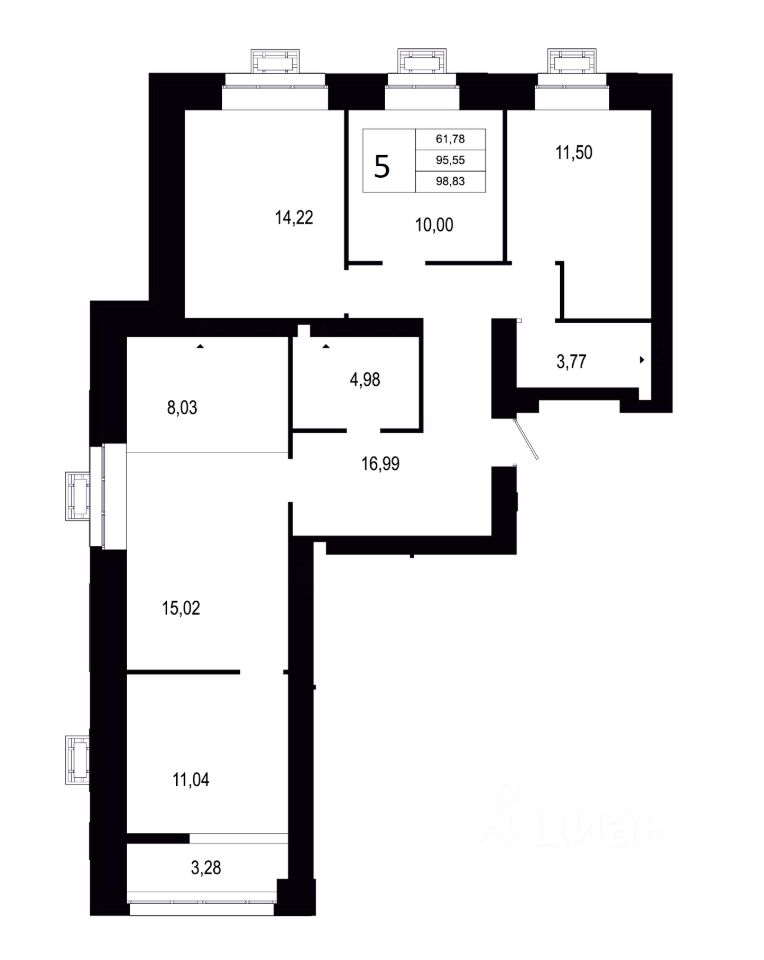 Общая площадь98,83 м2