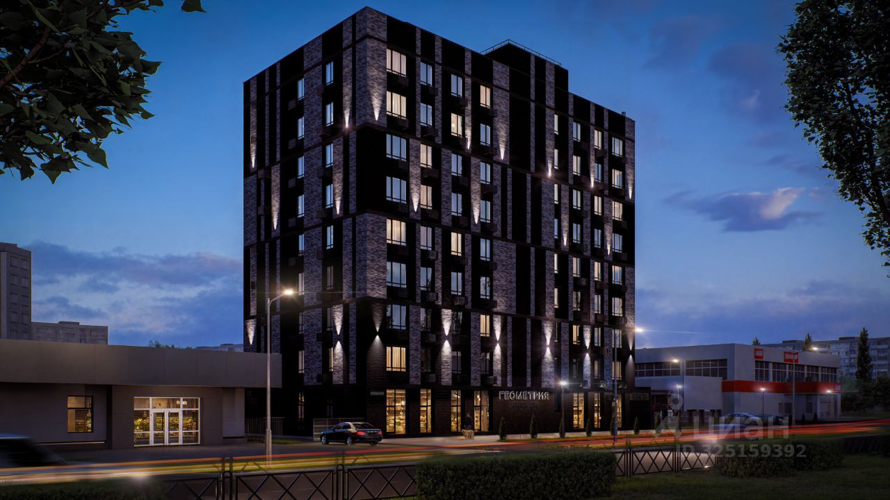 Жилой дом ''Геометрия'' — современный девятиэтажный дом по ул. им Землячки, выполненный в актуальной архитектурной концепции с акцентом на четкие линии и выразительную геометрию фасада. Конструкция возводится по трёхслойной каменной технологии с облицовочным кирпичом, минераловатным утеплителем и несущей силикатной стеной, по периметру предусмотрено витражное и оконное остекление, а также остекление лоджий. На каждом этаже расположено всего по 6 квартир с продуманной ''геометрией'' планировок, учитывающей повышенные требования к акустическому и бытовому комфорту, — исключено соседство с шумными помещениями. Двор ''Геометрии'' благоустраивается и интегрируется в полностью сформированную городскую инфраструктуру района. На закрытой территории предусматриваются собственная парковка, рекреационные зоны, проезды, озеленение, детские и спортивные площадки, а также уютные места для тихого отдыха жителей. *Не оферта. Данное предложение действительно на дату обращения и в течении 2-х дней. Актуальную стоимость уточняйте в отделе продаж.