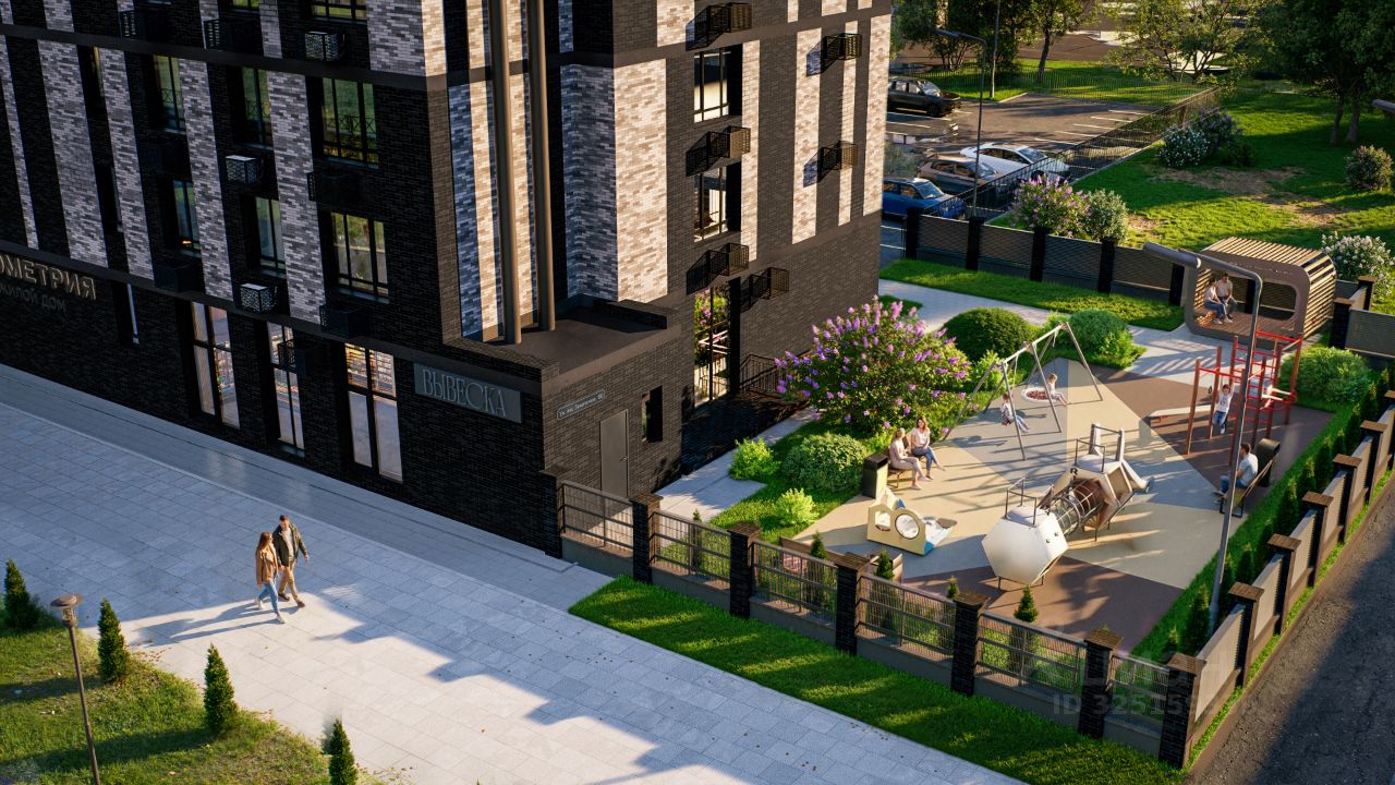 Жилой дом ''Геометрия'' — современный девятиэтажный дом по ул. им Землячки, выполненный в актуальной архитектурной концепции с акцентом на четкие линии и выразительную геометрию фасада. Конструкция возводится по трёхслойной каменной технологии с облицовочным кирпичом, минераловатным утеплителем и несущей силикатной стеной, по периметру предусмотрено витражное и оконное остекление, а также остекление лоджий. На каждом этаже расположено всего по 6 квартир с продуманной ''геометрией'' планировок, учитывающей повышенные требования к акустическому и бытовому комфорту, — исключено соседство с шумными помещениями. Двор ''Геометрии'' благоустраивается и интегрируется в полностью сформированную городскую инфраструктуру района.