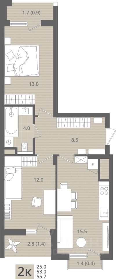 Общая площадь55,7 м2