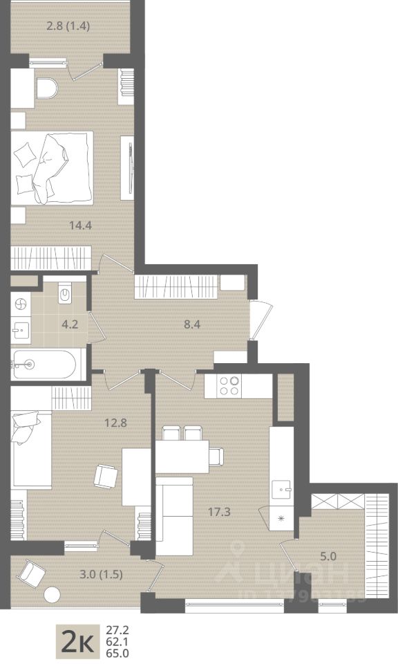 Общая площадь65 м2