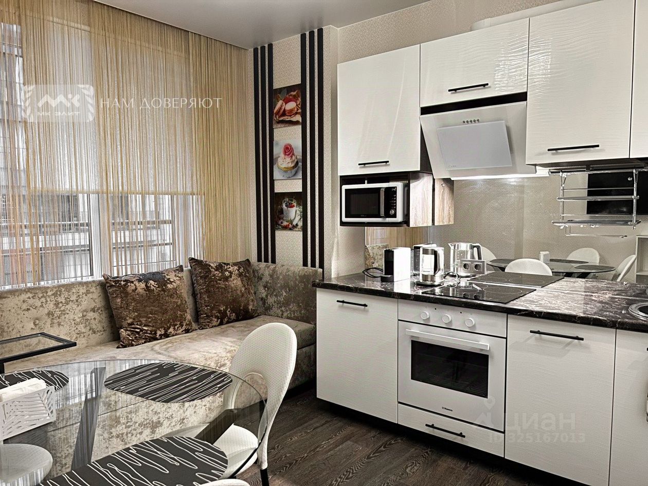 Квартира оснащена новой мебелью, современной техникой и функциональными зонами хранения.