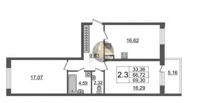 О квартире: - Квартира находится на 2 этаже 9-и этажного дома - Общая площадь квартиры 66,72 м2 - Уютная спальня 17,07 м2 - Просторная гостиная 16,2 м2 - Кухня 16,6 м2 - Застекленный балкон 5,1 м2 - Раздельный санузел 4,5 + 2,3 м2