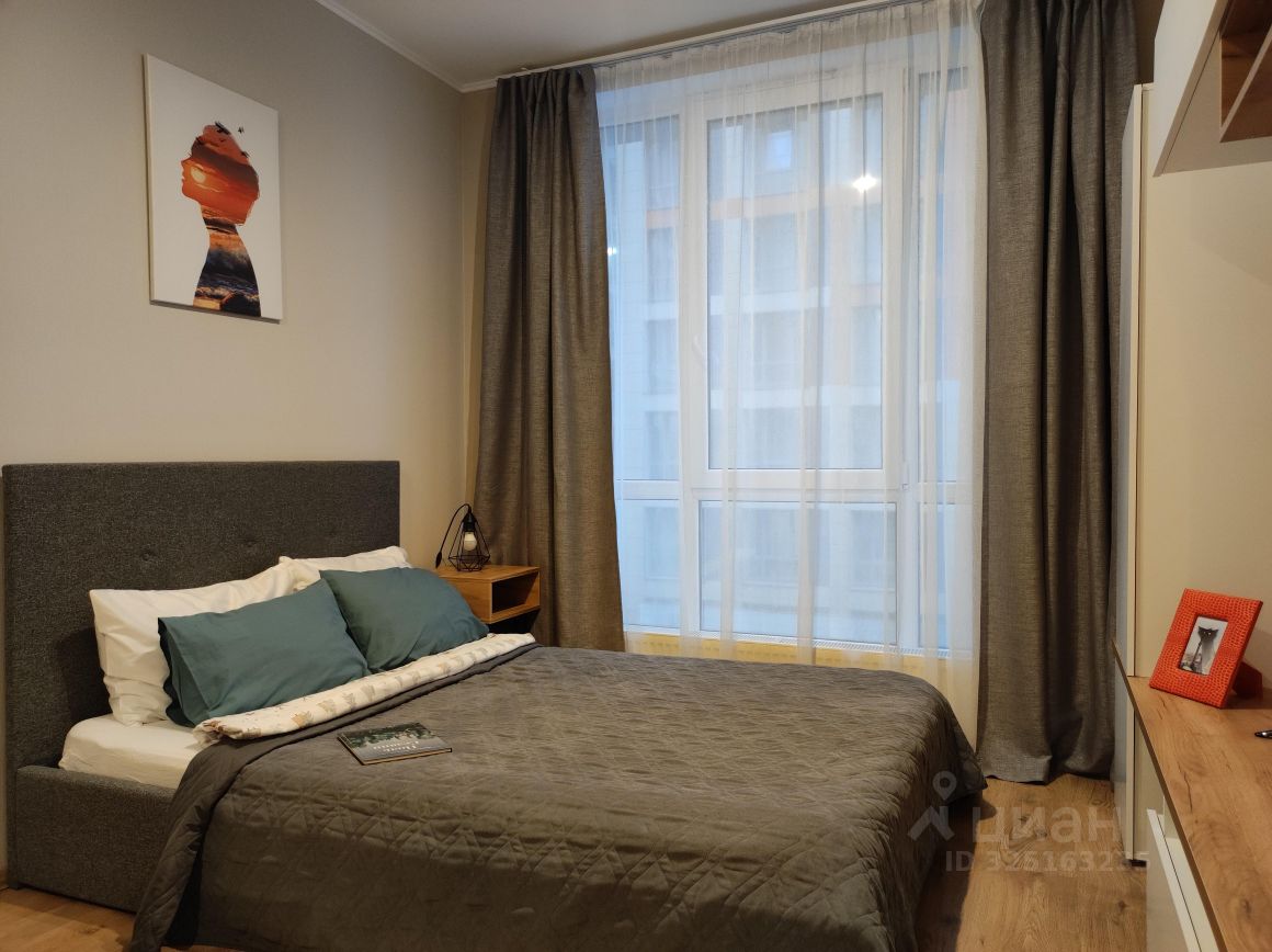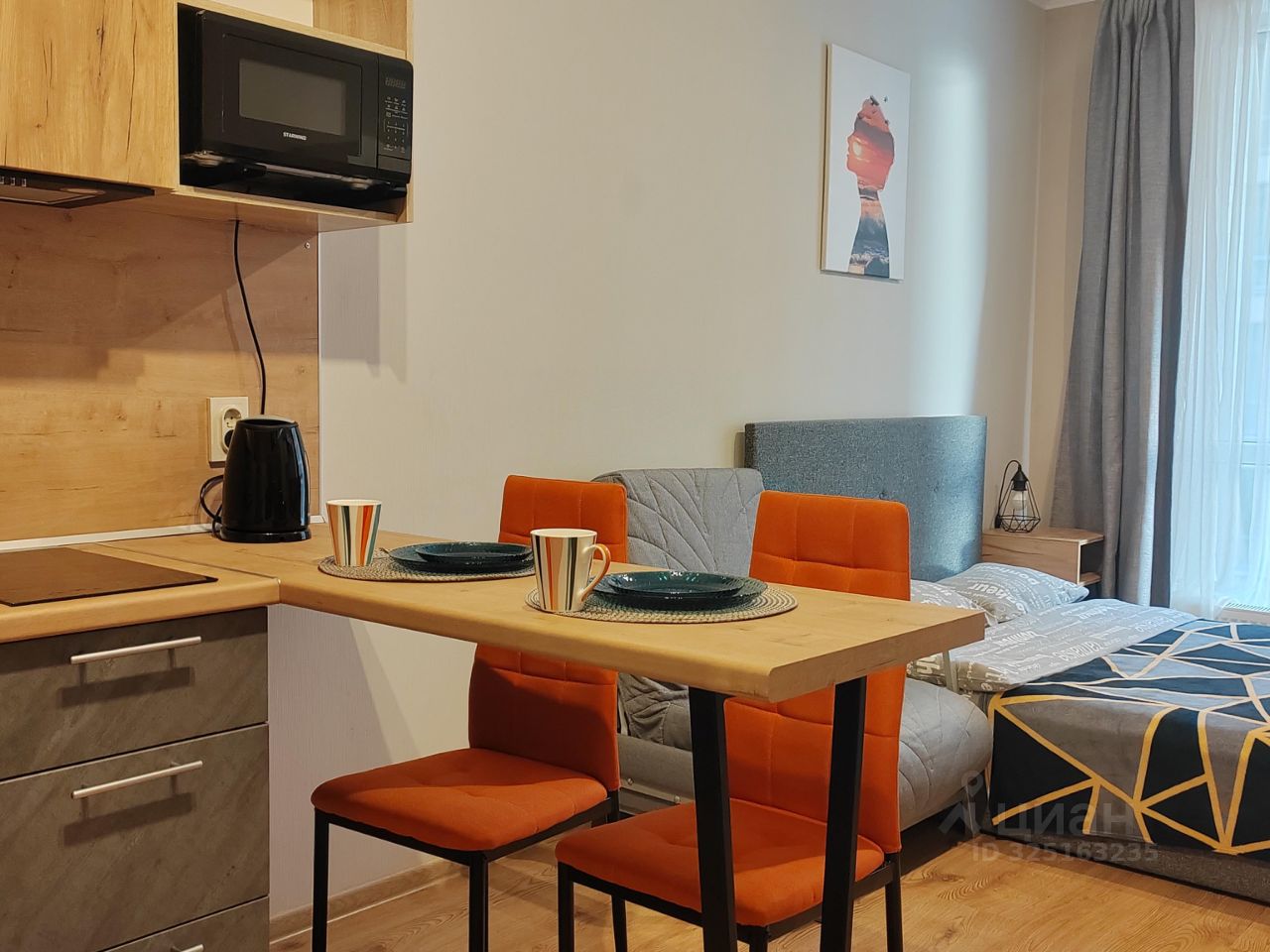 Кухня оборудована плитой, микроволновой печью, вытяжкой, чайником, посудой для приготовления и столовыми приборами. В гостиной зоне располагается система хранения, двухспальная кровать и кресло-кровать (дополнительное спальное место). Smart телевизор и беспроводной интернет скрасят ваши вечера. Отдельной ванная комната с душевой кабиной и стиральной машиной. В комплексе круглосуточная охрана, закрытая территория.