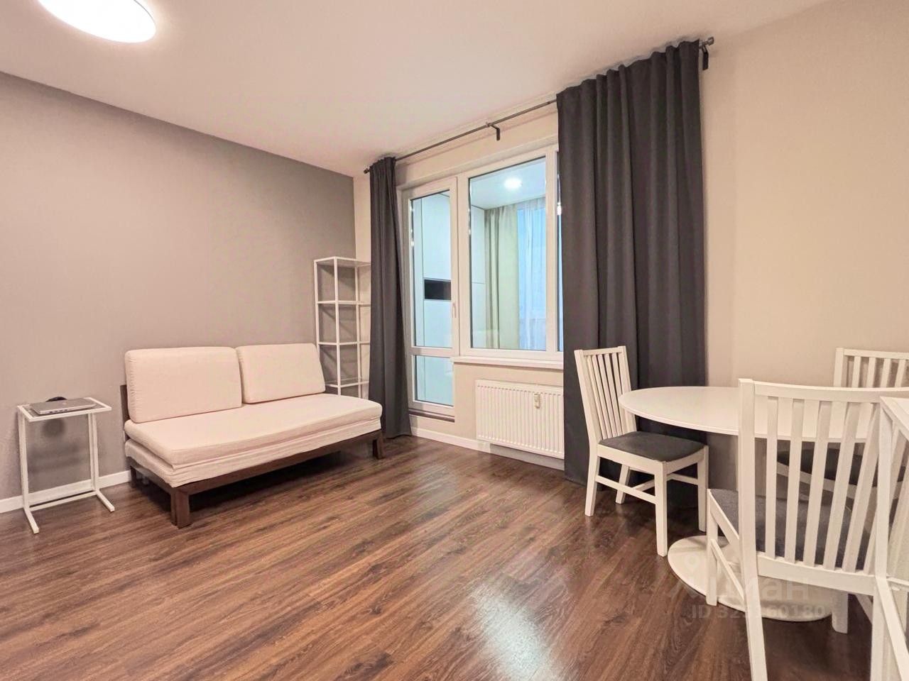 Сдается на длительный срок стильная студия (окна в тихий двор без машин) с современным ремонтом с панорамной застекленной лоджией с подогреваемым полом, с дополнительным спальным местом. Ремонт НЕ от застройщика, тщательно продуман. Просторная кухня оборудована всей необходимой техникой: холодильник, плита, микроволновая печь и посудомоечная машина. Из мебели — удобный диван и шкафы для хранения вещей.