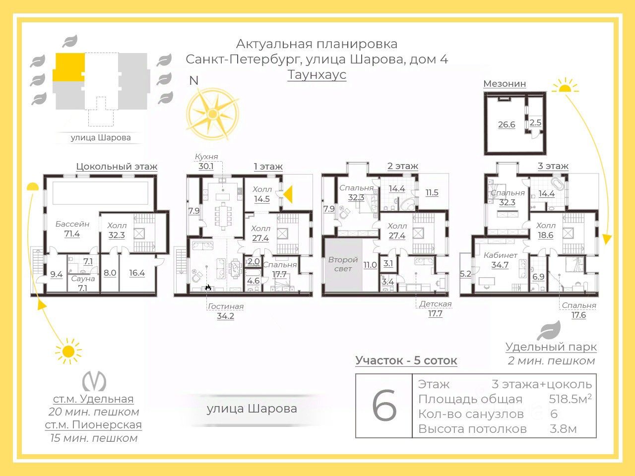 Арт. 106357406 Предлагается в аренду роскошный таунхаус в парковой зоне. Расположен на закрытой территории с круглосуточной охраной. В доме всего 2 квартиры. Общая площадь таунхауса 550м2. У квартиры свой лифт с цокольного по третий этаж. Первый уровень занимают: гостиная, кухня, холл, гостевая спальня, с/у. Второй уровень: 3 мастер-спальни с гардеробными и ванными комнатами, просторная терраса. Третий уровень: кабинет, мастер-спальня с гардеробом и с/у. На цокольном этаже: СПА зона с бассейном, хамамом, сауной и душевой, большая гардеробная и выход в подземный паркинг. Есть своя придомовая территория с местами для отдыха и гриля. В квартире произведен качественный ремонт по дизайн-проекту, с применением натуральных материалов (дерево, мрамор). Интерьер отличается спокойной строгостью, изяществом и утонченностью. Мебель премиальных марок. Бытовая техника Miele. Действующий камин. Установлена система Умный дом. Кондиционирование. Дом находится рядом с Удельным парком, теннисным кортом, тренировочной базой ''Зенит''.